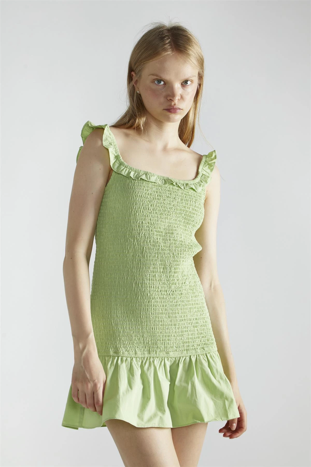 Glamorous Women’s Apple-Green Square-Neck-Bodycon Mini-Dress. This vibrant mini-dress is a head-turning blend of style and comfort. The square neckline frames your décolletage beautifully, while the bodycon fit hugs your curves in all the right places. Pleated detailing adds texture and interest, creating a flattering silhouette that catches the eye. The shirred fabric ensures a snug yet flexible fit, allowing you to move with ease. Its sleeveless design makes it ideal for warm days and nights, showing off your arms and keeping you cool. Pair this dress with strappy sandals and delicate jewellery for a chic daytime look, or dress it up with heels and statement earrings for evening events. Layer it with a denim jacket for a casual twist, or add a blazer for a more polished ensemble. The vivid hue is perfect for making a statement at summer parties or brightening up your everyday wardrobe. This mini-dress is a versatile piece that effortlessly combines fun and fashion.