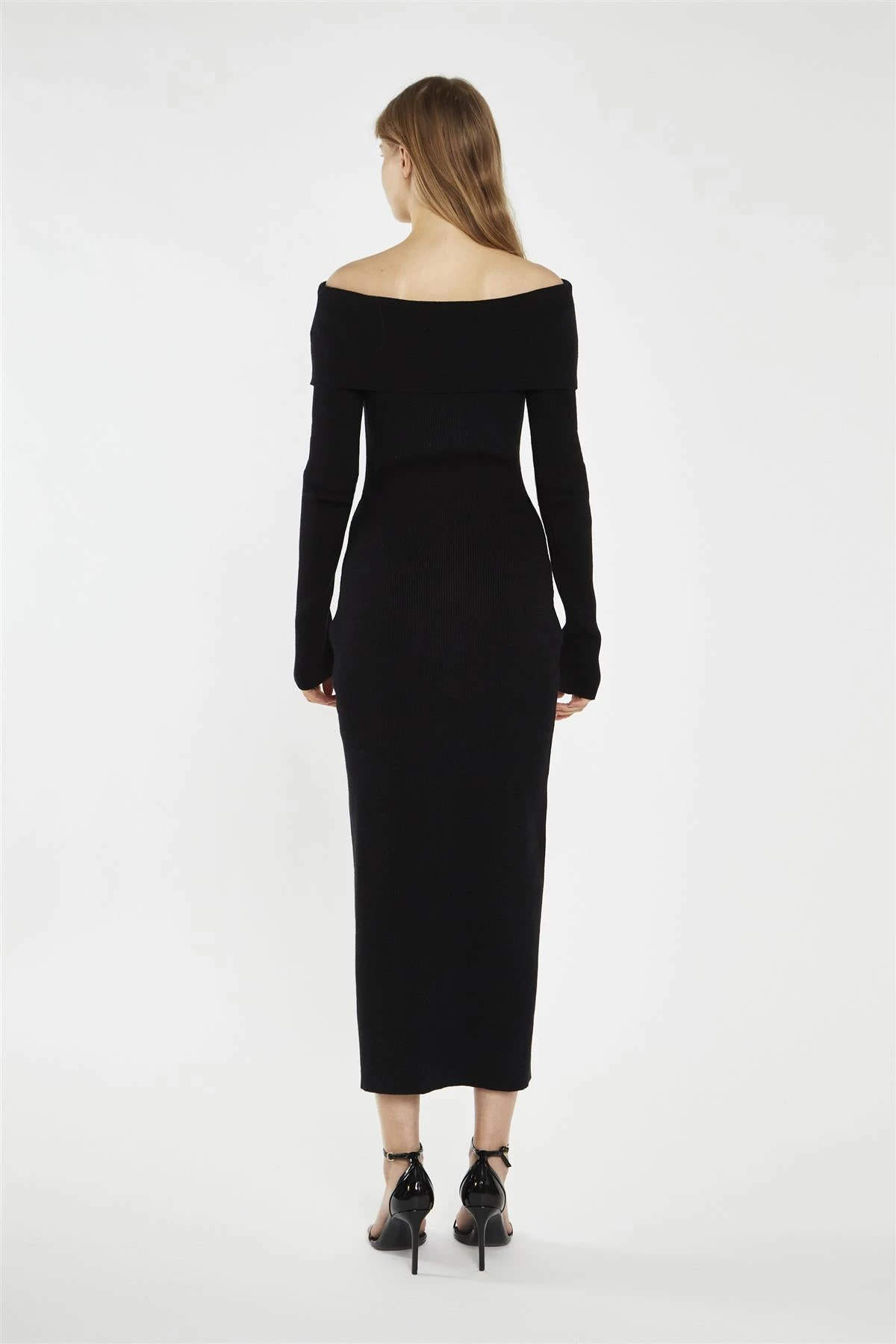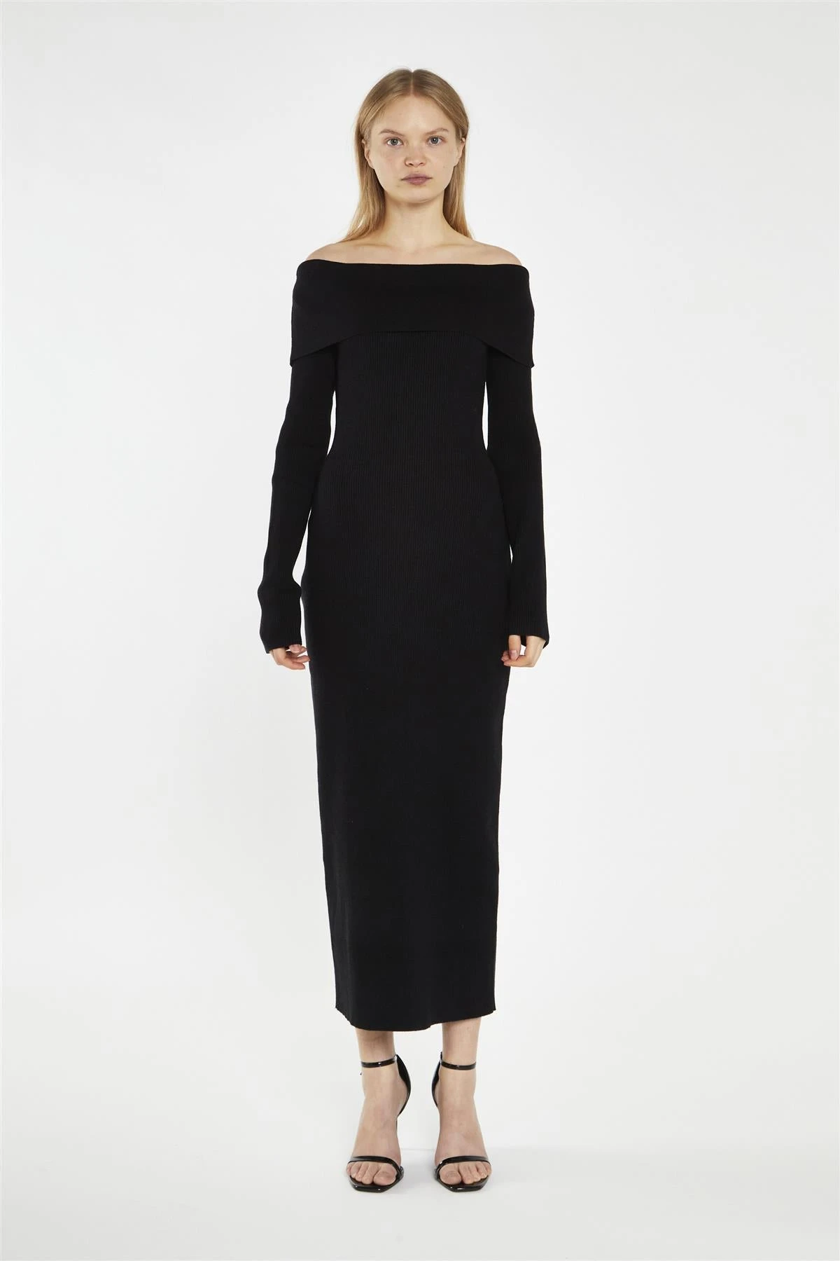Glamorous Women’s Black Bardot Knitted Midi-Dress. Meet your new favourite little black dress: our Black Bardot Knitted Midi-Dress. This stunning piece combines comfort and style in a way that’ll make you feel like a million bucks. The knitted fabric hugs your curves just right, creating a flattering bodycon fit that’s both cozy and chic. The alluring Bardot neckline adds a touch of romance, showing off your shoulders in the most elegant way. Long sleeves keep you warm on cooler evenings, while the midi length strikes the perfect balance between modest and modern. This dress is a true chameleon in your wardrobe – dress it up with statement jewellery and heels for a night out, or keep it casual with sneakers and a denim jacket for daytime adventures. It’s not just a dress; it’s your secret weapon for those “I have nothing to wear” moments, always ready to make you look and feel fantastic..