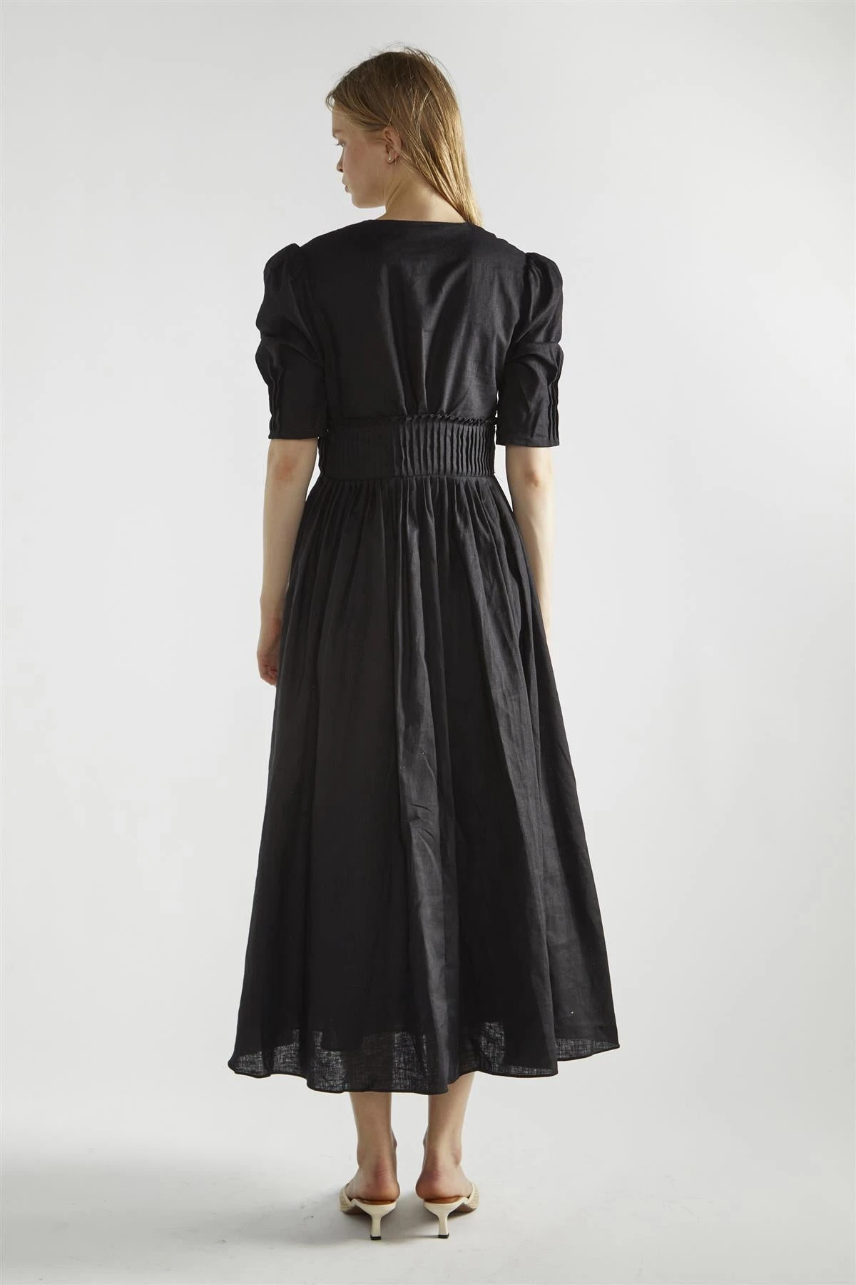 Glamorous Women’s Black Deep-V-Neck-Skater Midi-Dress. This striking midi-Dress combines classic elegance with modern flair. The deep V-neck adds a touch of allure, while the skater silhouette creates a flattering, feminine shape. Elbow-length statement sleeves bring drama and sophistication to the overall look, making it suitable for both day and evening events. The tie-front detailing adds a playful touch and allows for a customizable fit. Pair this versatile piece with strappy heels and statement earrings for a night out, or dress it down with ankle boots and a denim jacket for a more casual vibe. The midi length is ideal for showcasing your favourite footwear, from sleek pumps to trendy sneakers. Layer it with a long cardigan for cooler days, or add a wide belt to accentuate your waist. This skirt is a fantastic addition to your wardrobe, offering endless styling possibilities for various occasions.