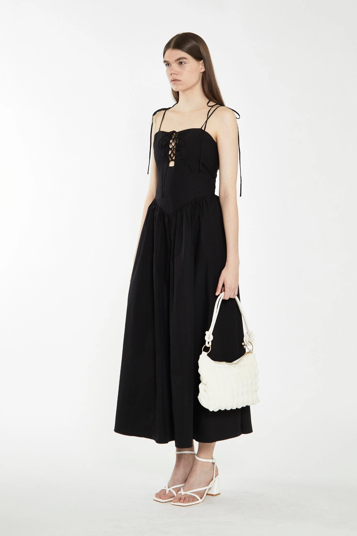 - Stunning black colour and lace-up bodice design