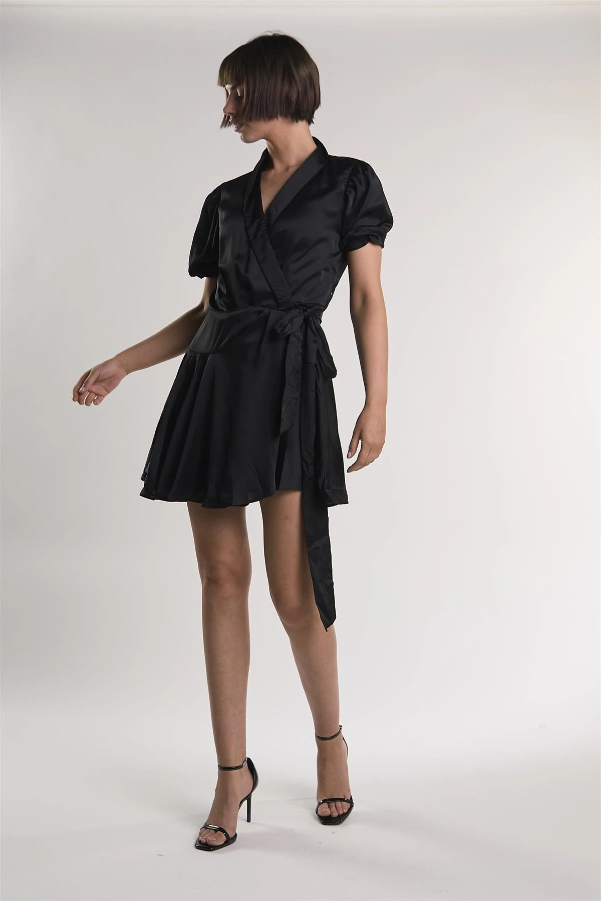 The Crossover Tie Mini Dress offers a subtle satin sheen with a design that’s relaxed yet refined. The tie detailing creates a flattering silhouette while allowing you to adjust the fit to your preference. Soft puff sleeves add gentle volume, and a V-neckline opens the neckline with understated elegance. Finish the look with simple flats or heels for a style that feels effortless with a touch of sophistication.
