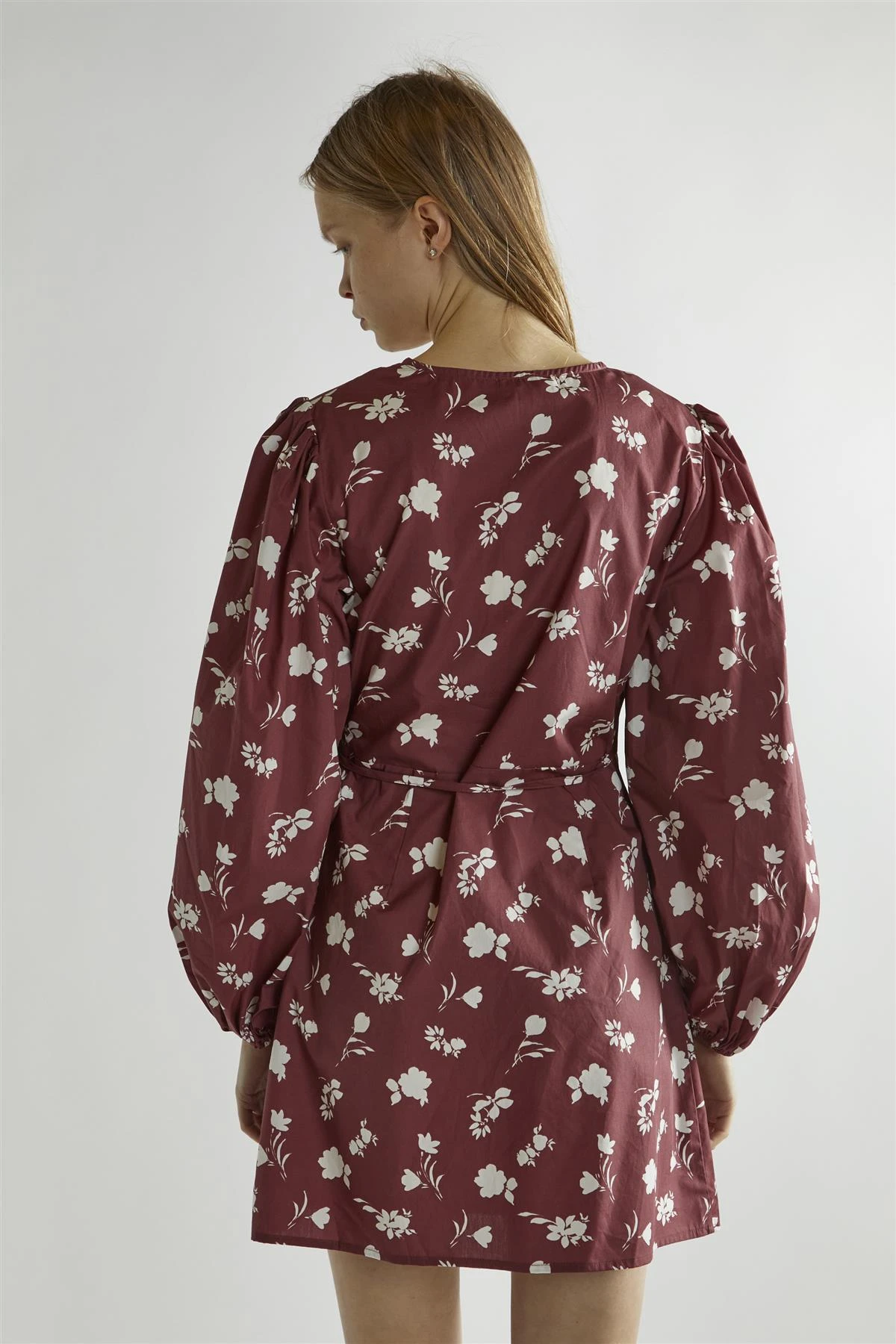 The Burgundy Floral Wrap Mini-Dress blends romantic charm with effortless wearability. Its flattering wrap silhouette and feminine V-neck move with you, while long sleeves add subtle coverage. Finished with flowing fabric and playful length, it’s a dress that lets your style bloom with every step.