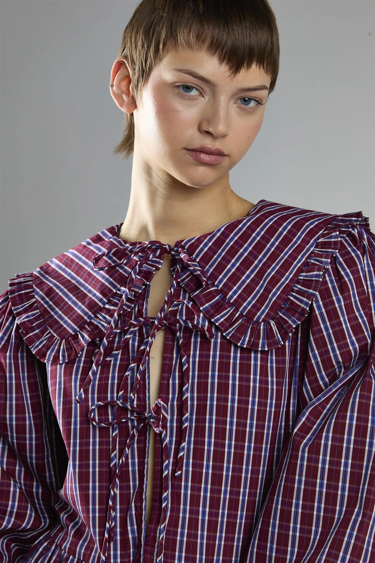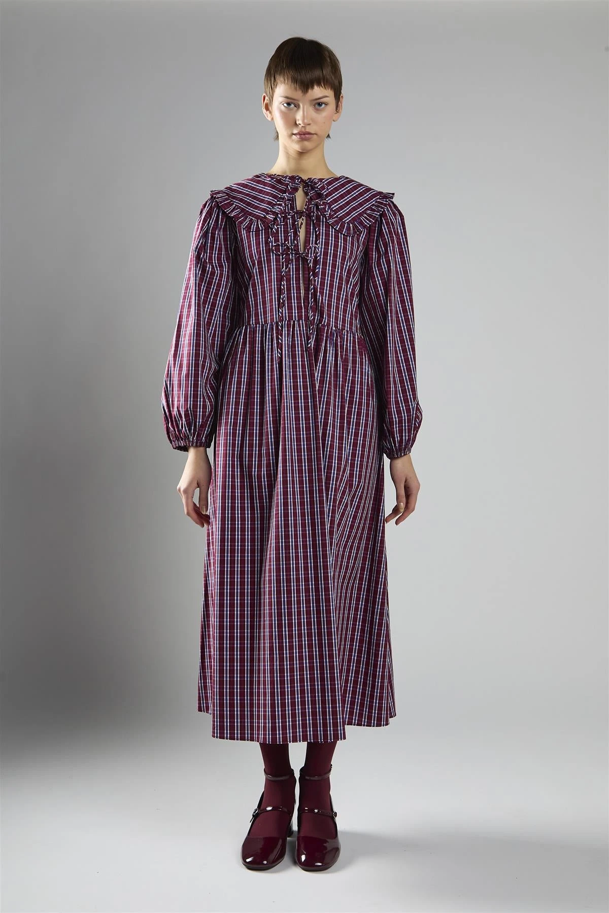 Glamorous Women’s Burgundy-Navy-Check Tie-Front Midi-Dress. This midi dress brings a fresh spin to everyday style with its eye-catching check pattern and playful tie-front detail. The statement collar adds a little extra personality, while long sleeves keep things comfortable and versatile for any season. Falling to a flattering midi length, this dress is easy to wear for all sorts of occasions, from casual lunches to relaxed evenings out. Pair it with your favourite ankle boots or simple flats for a look that feels both easy-going and put-together. The tie-front lets you adjust the fit to suit your mood, and the soft fabric makes it a pleasure to wear all day long. This dress is all about making you feel good without any fuss.