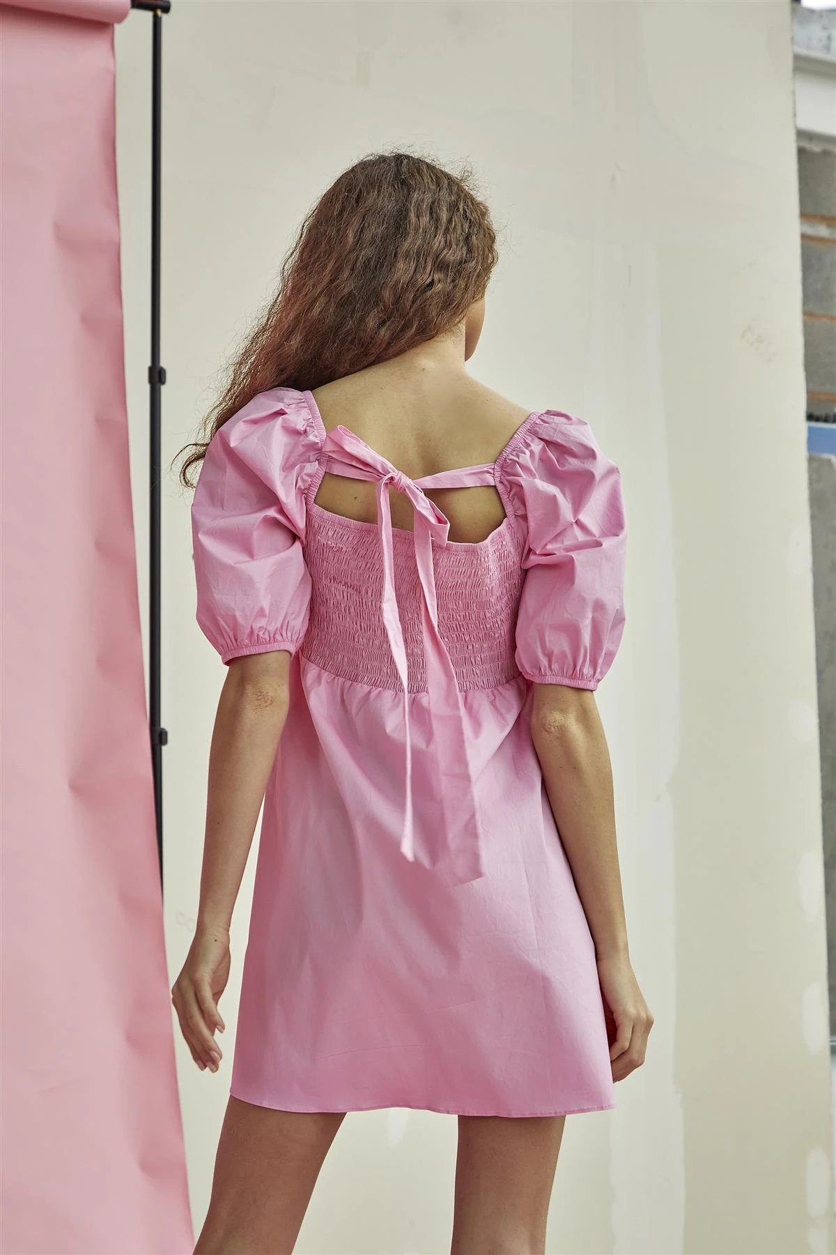 Glamorous Women’s Candy-Pink Square-Neck Mini-Dress. This mini dress brings a sweet, easy charm with its square neckline and gently shirred bust that adds a soft stretch and texture up top. The short sleeves keep it casual and cool, while the mini length gives it a fun, light feel that’s easy to wear from morning to evening. A tie-back detail adds a subtle touch of shape and lets you adjust things just how you like them. The whole look is simple but thoughtful, with little features that make it feel special without adding any fuss. Throw it on with some slides or sneakers, or pair it with the matching hair accessory if there’s one—it’s an outfit that practically makes itself.