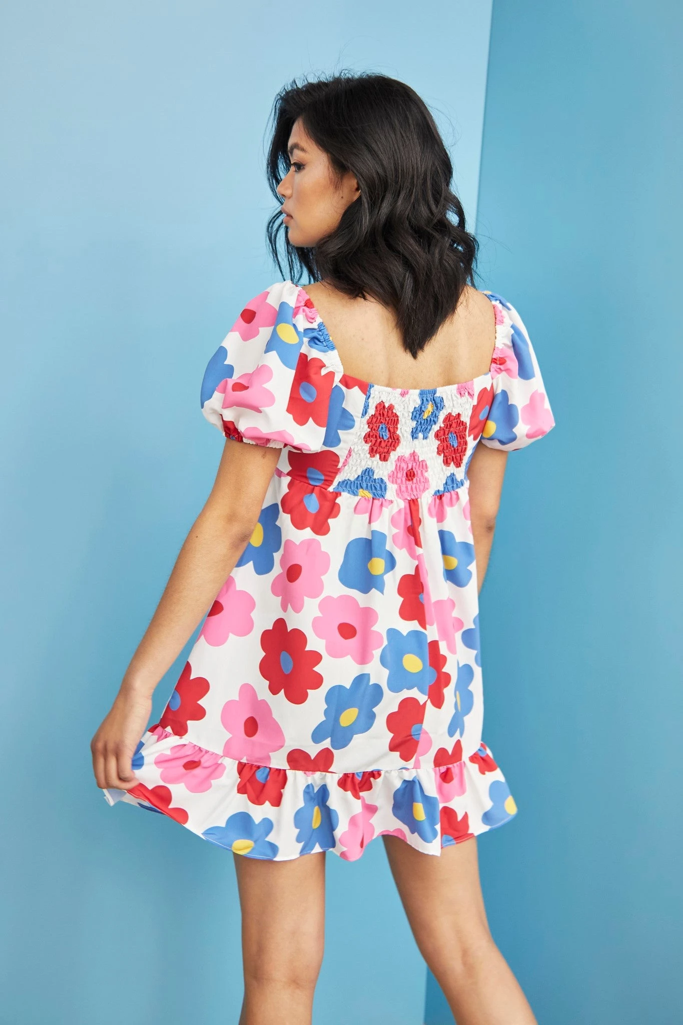 Glamorous Care Bright Large Floral Puff Shoulder Mini Dress. This dress is perfect for your wardrobe this season. this sustainable piece in a floral print will look great on you this Autumn. Featuring a square neck and mini dress fit, this dress will have heads turning. Pair with chunky boots for a effortlessly chic look.
