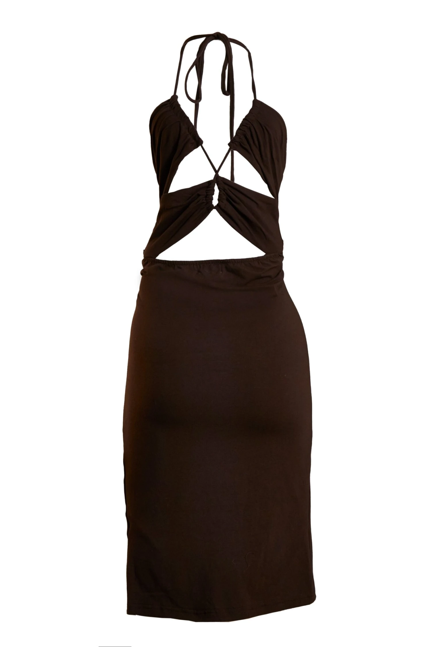 Glamorous Care Brown Open Back Detail Mini Dress. We cant get enough of this mini dress featuring a tie back detail and cut out front, super on trend flattering fit. Join our positive journey towards reducing the impact that fashion has on our planet by styling this with some heels for the evening or trainers for the daytime for the perfect environmentally friendly look.