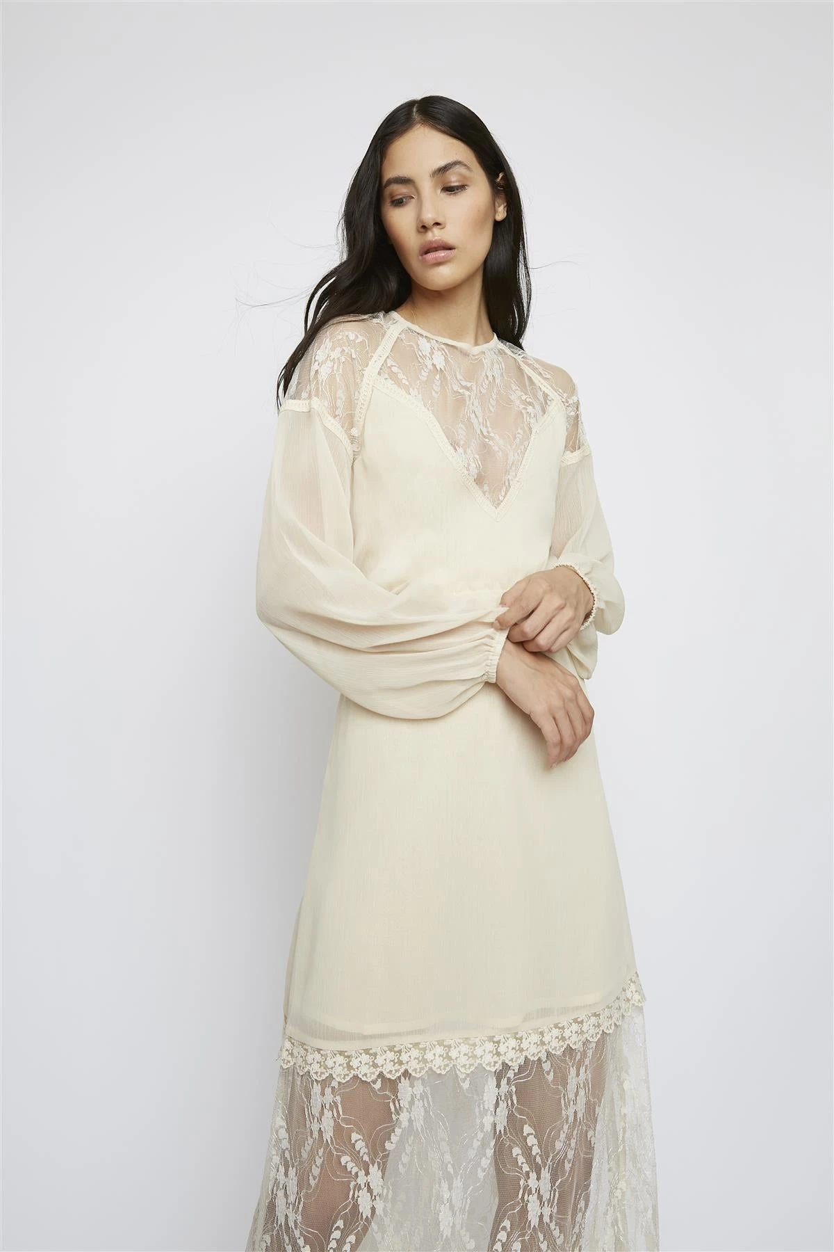 Glamorous Women’s Champagne Lace-Detail Maxi-Dress. Indulge in romantic elegance with this enchanting lace-detail maxi dress. The delicate lace creates a mesmerizing pattern that catches the light and turns heads wherever you go. Long sleeves add a touch of grace and versatility, making this dress suitable for various seasons and occasions. The sheer fabric adds an alluring element, offering glimpses of skin while maintaining a tasteful appearance. An open back design brings a daring twist, perfect for those who love to make a statement. This maxi dress isn’t just clothing; it’s a confidence booster that makes you feel like you’re floating on cloud nine. The flowing silhouette moves with you, creating a dreamy effect as you walk. Pair it with strappy heels and minimal jewellery for a wedding or gala, or dress it down with sandals and a sun hat for a luxurious beach dinner. The champagne hue complements a variety of skin tones, ensuring you look radiant in any lighting. Let this dress be your go-to choice for those moments when you want to feel like a modern-day goddess, turning every entrance into a memorable event.