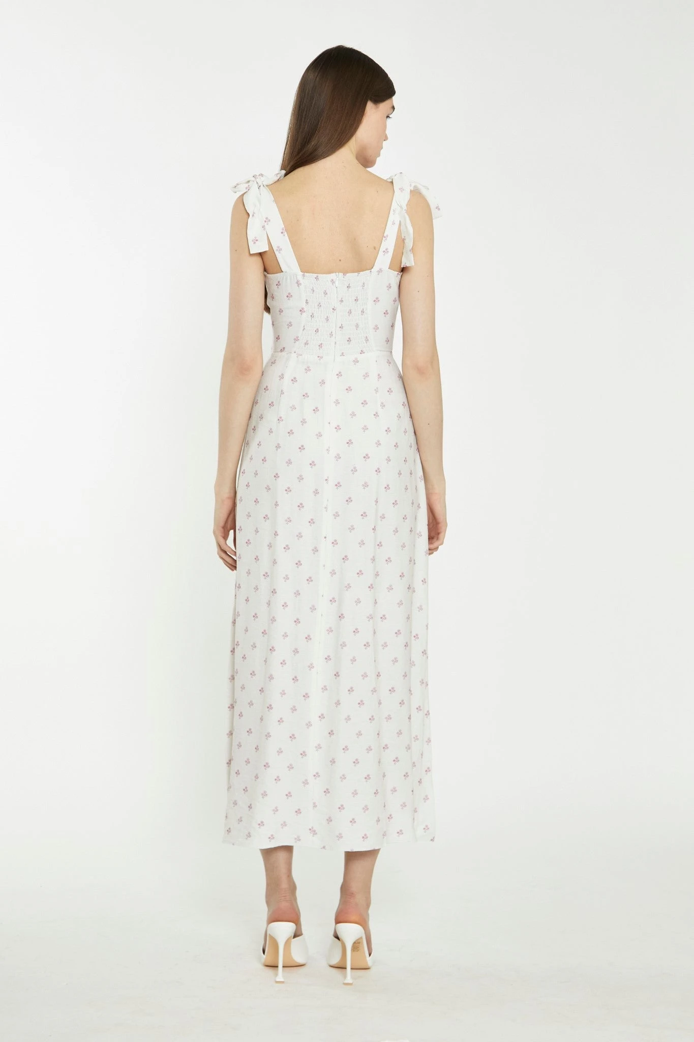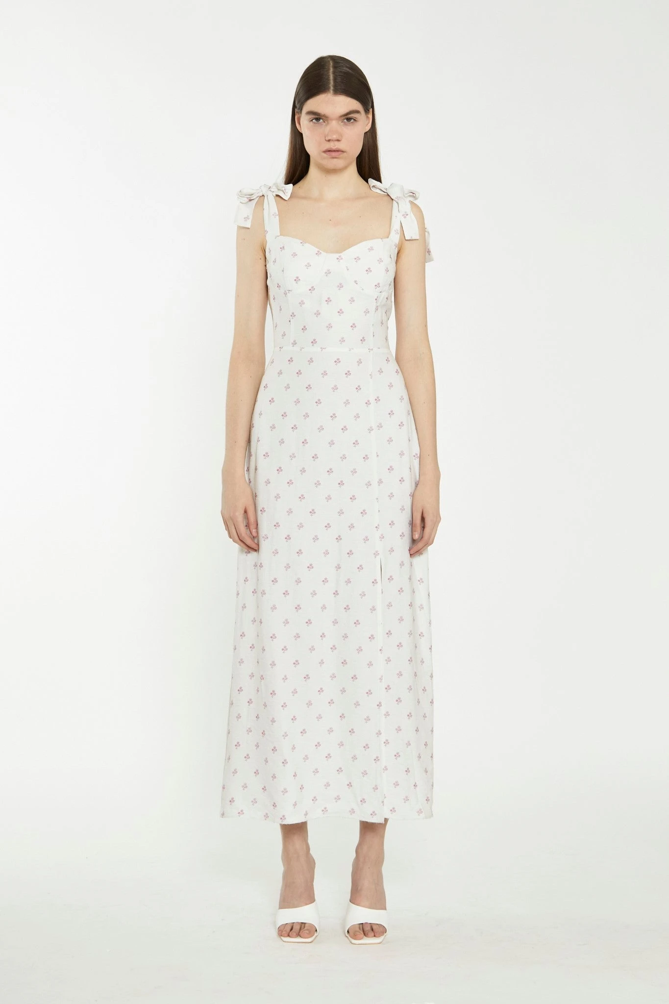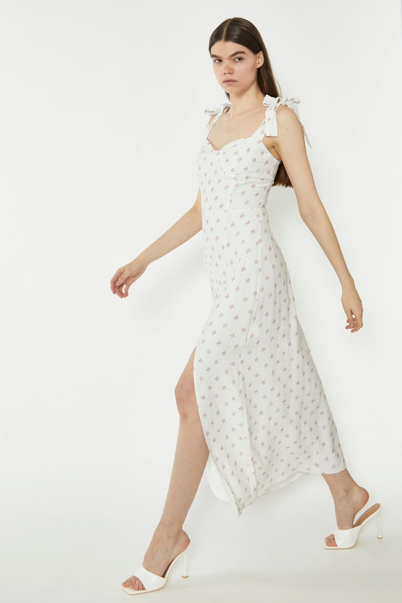 Glamorous Womens Cream Pink Stem Flower Midi-Dress. This gorgeous midi dress will look great on you! With side split detail and tie shoulders in a flattering midi fit, this dress is perfect for all occasions. Looks fab paired with some heeled mules for the ultimate stylish look.