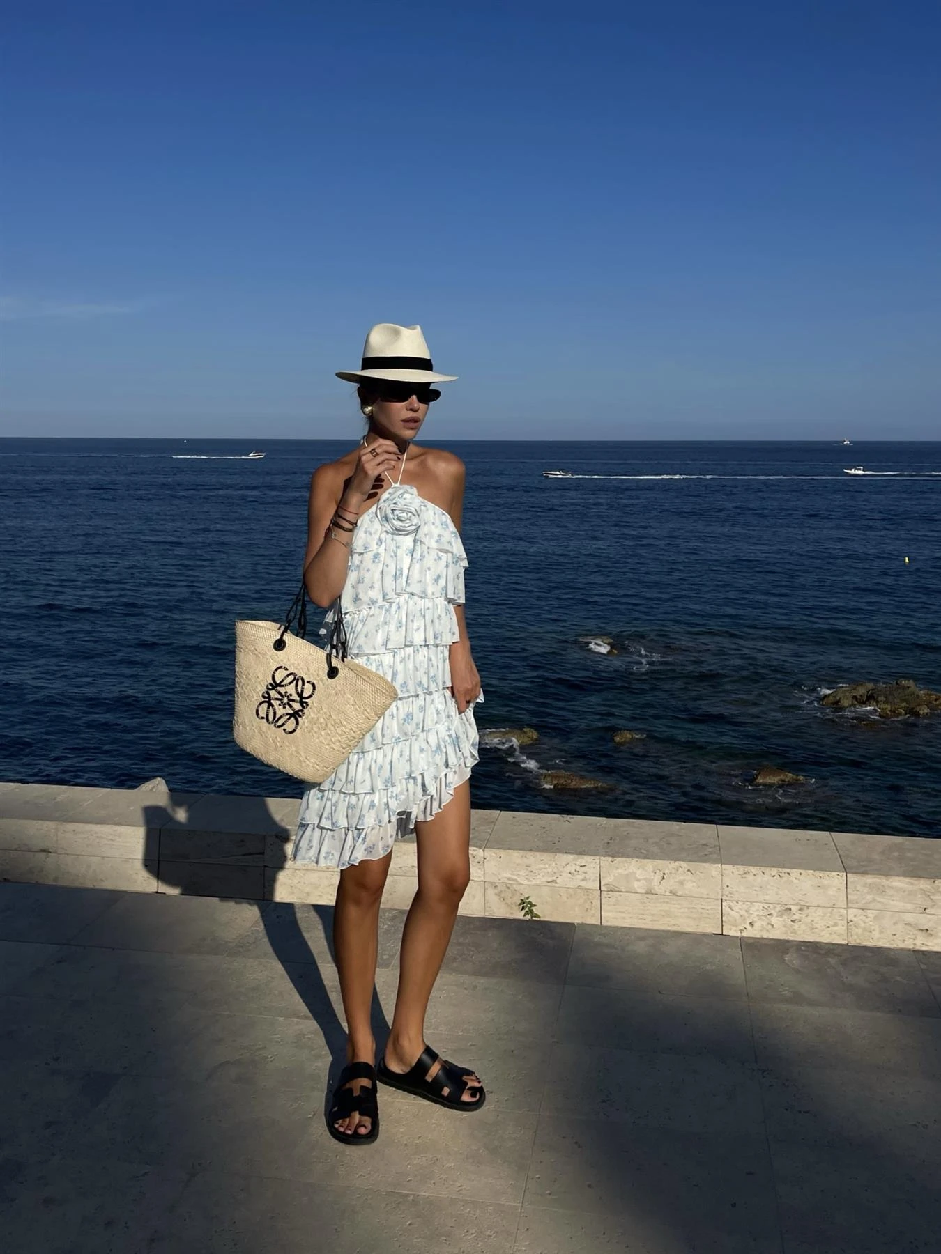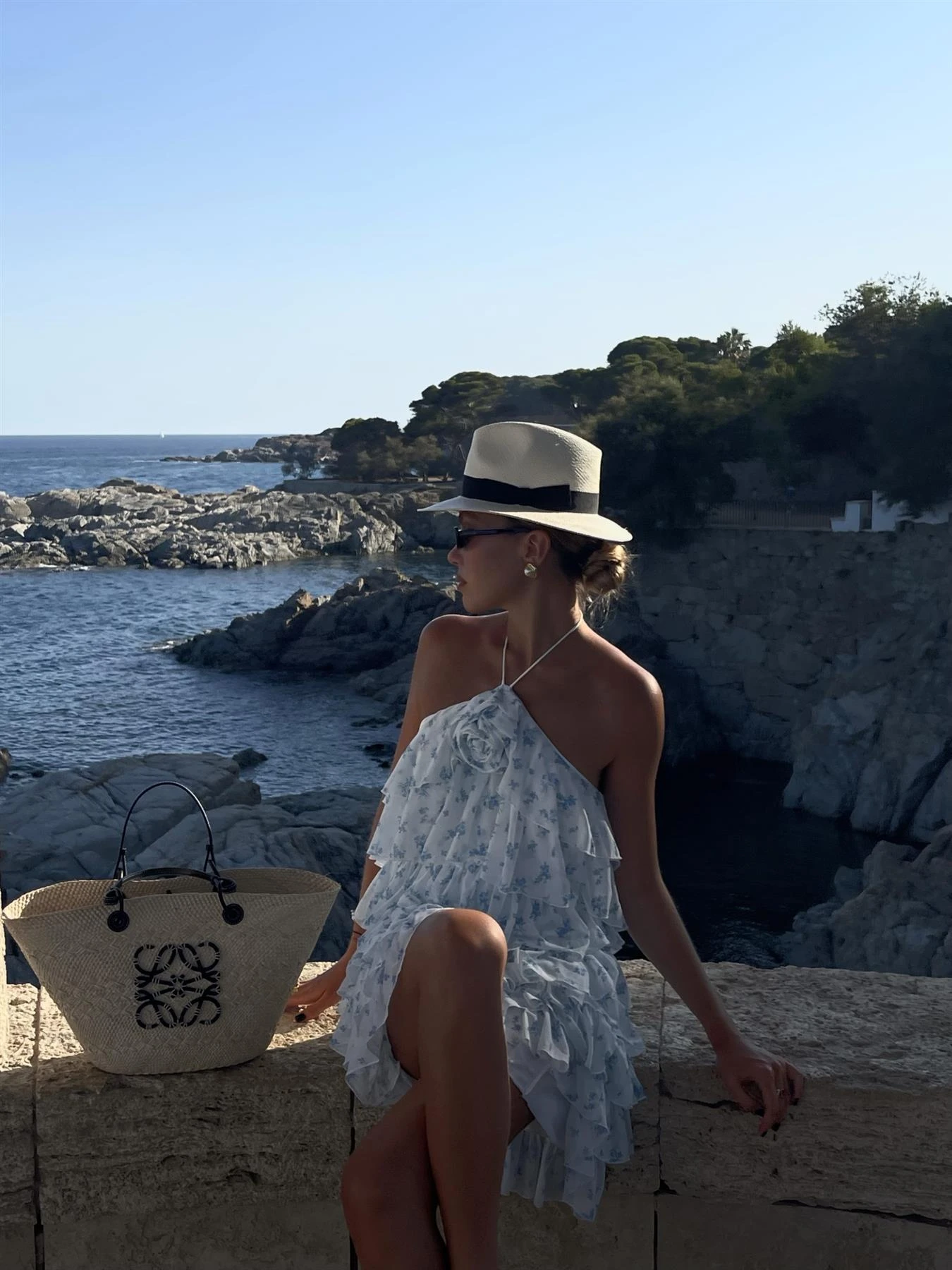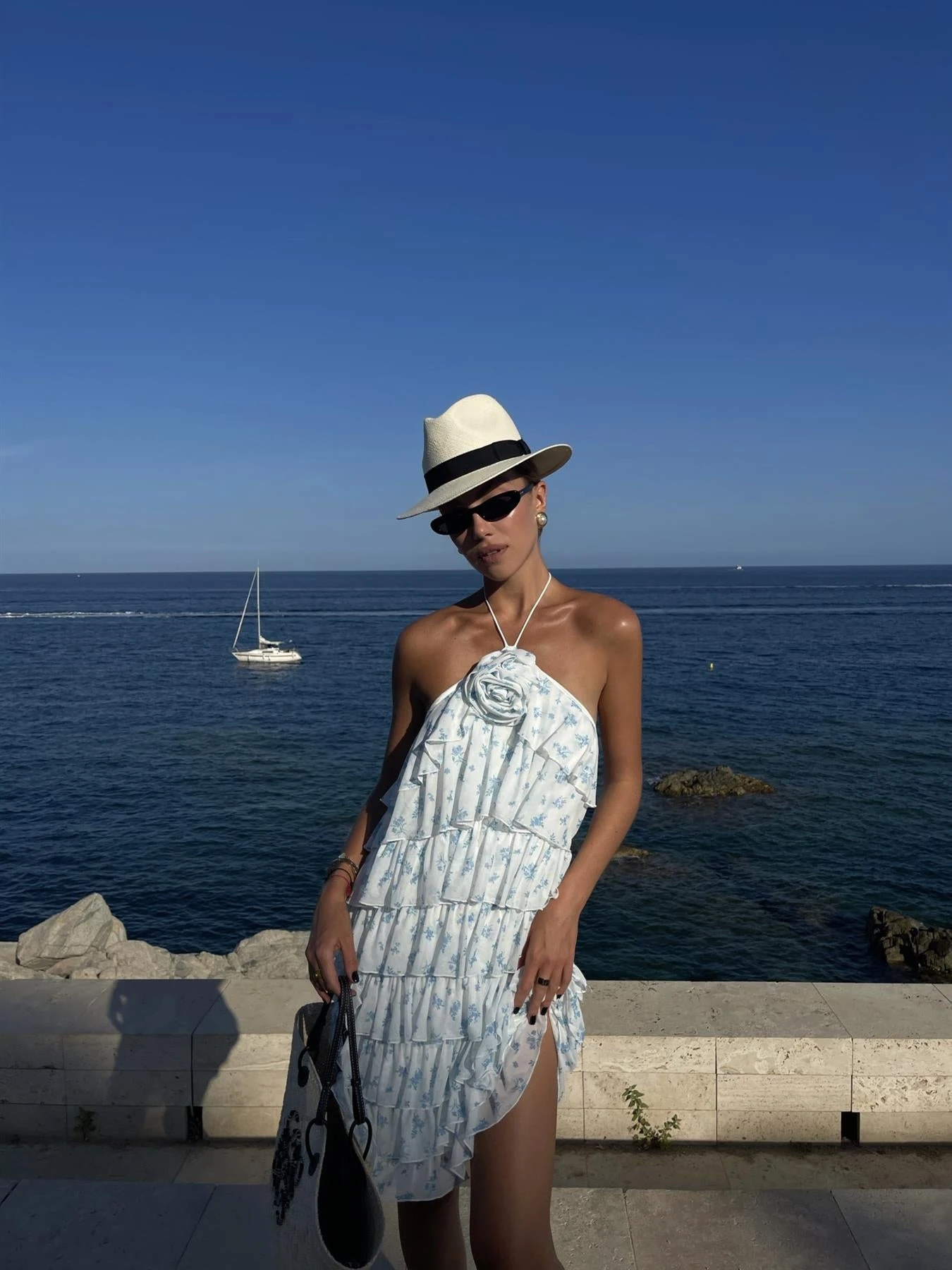 Collective the Label Women’s Faith Ruffle Corsage Mini-Dress -White Sky-Blue Ditsy. Be the star of the show in the stunning Faith Ruffle Corsage Mini-Dress. Featuring a playful halter neckline and cascading ruffle tiers, this dress is sure to make a statement. The charming corsage accent adds a touch of sophistication to any event. With its flirty mini length and bold style, this dress is a must-have for those looking to exude grace and confidence.