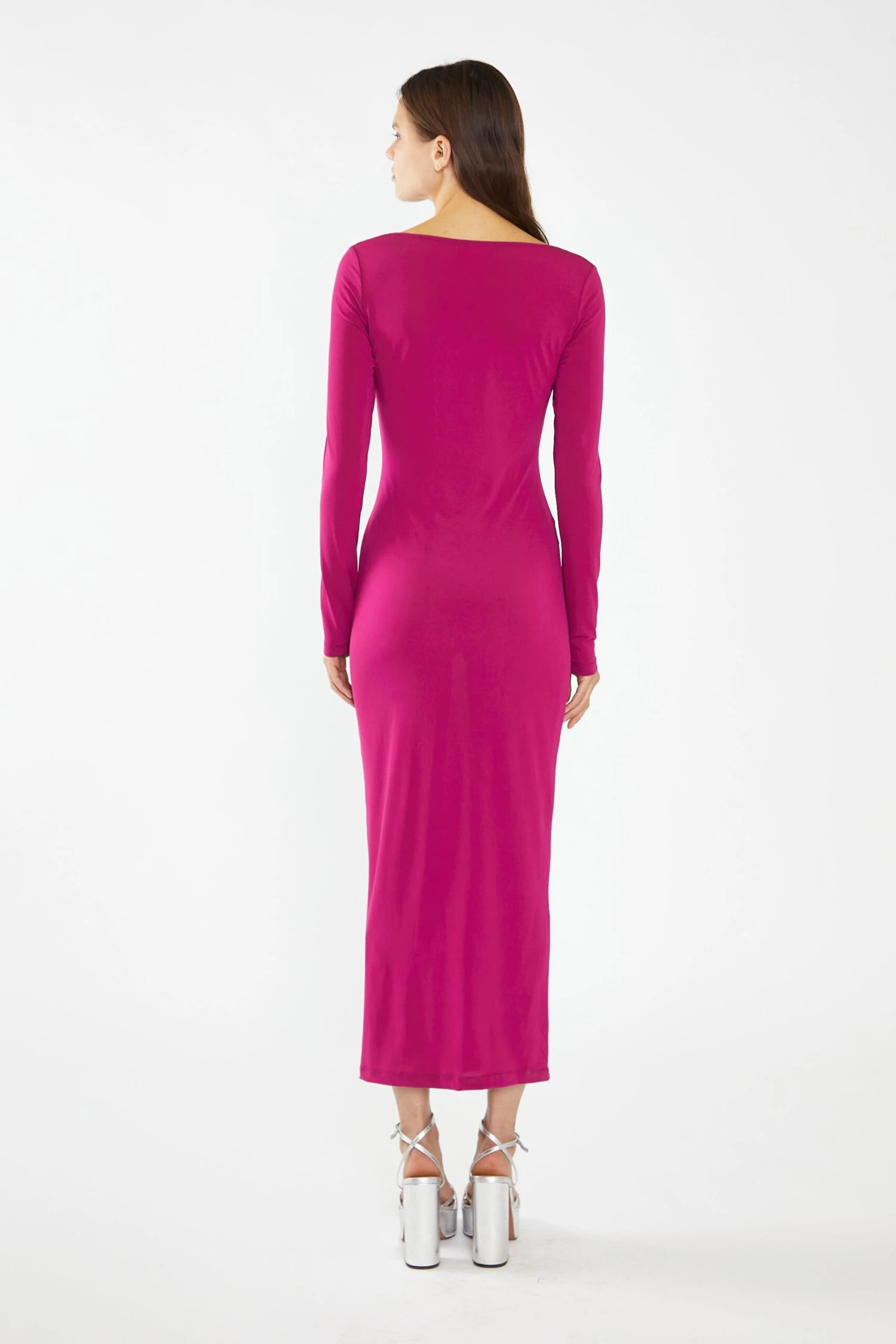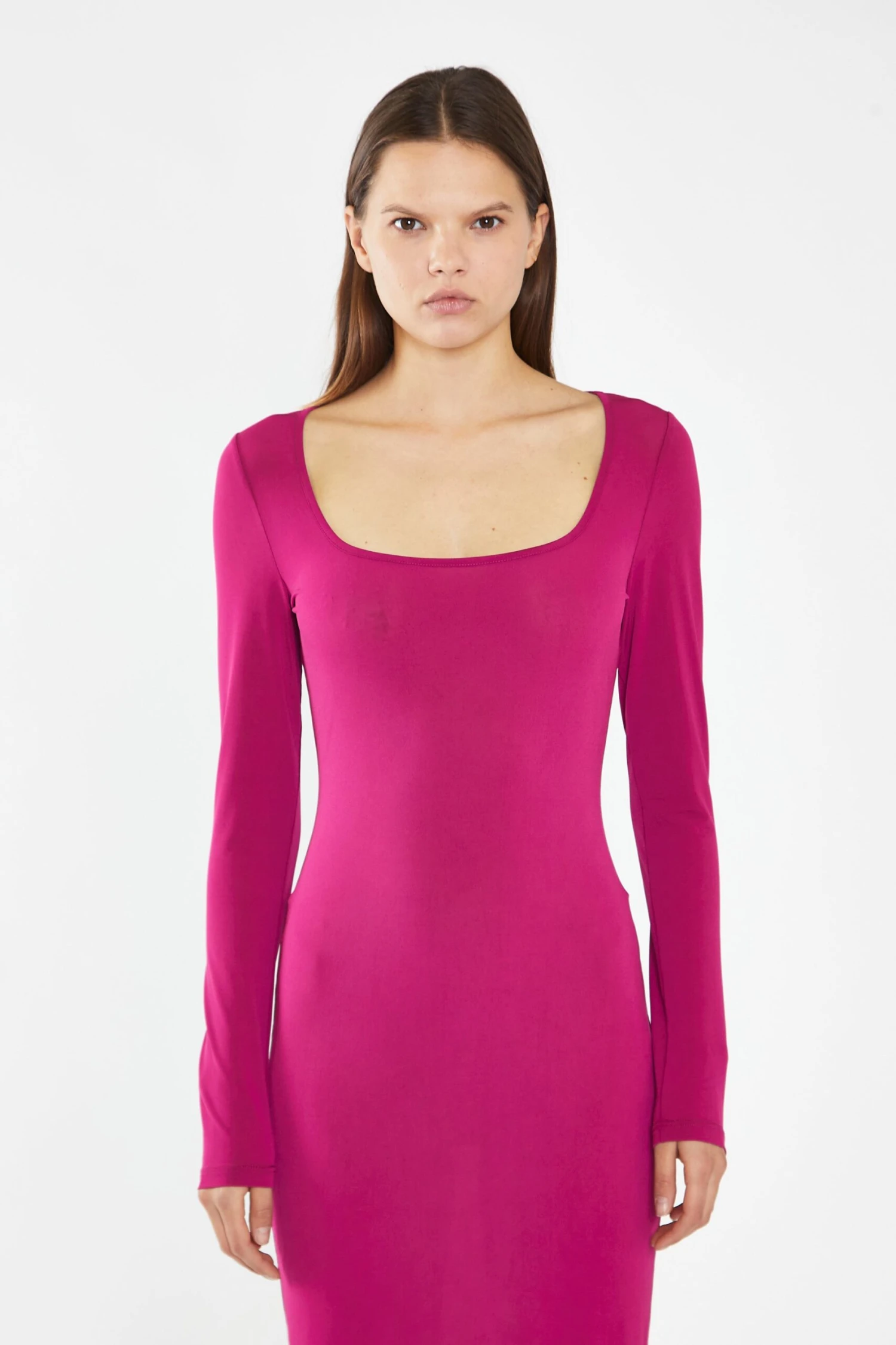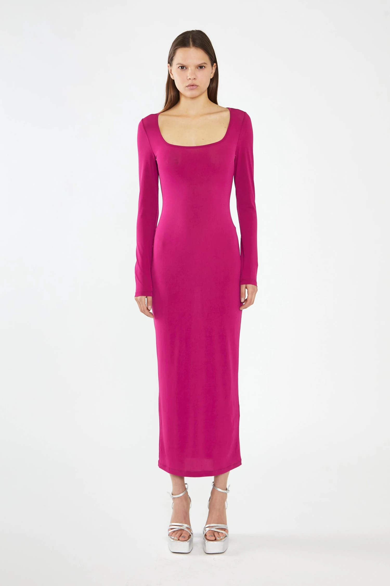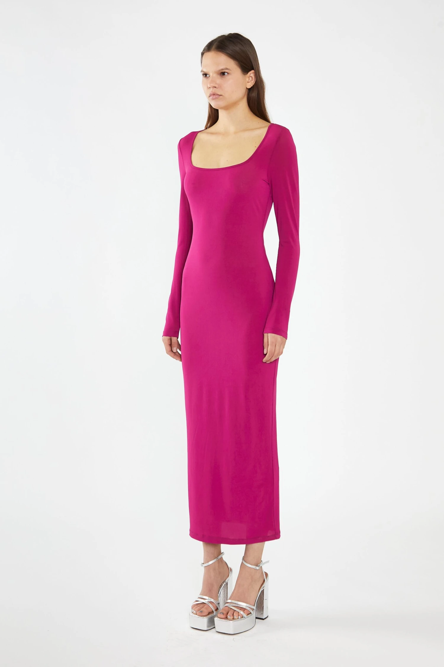 Glamorous Womens Fuchsia Square-Neck Bodycon Maxi-Dress. This fuchsia number is ready to make an entrance! Slip into this long sleeve bodycon dress and wow them all with your fabulous style. The maxi length is perfect for a night out on the town. Look and feel! your best – not to mention, turn some heads!