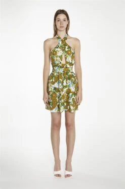 Glamorous Women’s Large-Brown-Green-Floral Crossover-Halter-Neck-Rara- Mini-Dress. This large floral crossover halter neck rara mini dress brings a playful mix of movement and shape. The halter neck design frames the shoulders nicely, while the crossover front adds a touch of interest without feeling fussy. A gathered waist gives a bit of structure and comfort, leading into the layered rara skirt that sways easily as you move. The mini length keeps the look fresh and light, while the concealed zip at the back keeps everything smooth and simple. It’s the kind of dress that feels just as good for relaxed daytime plans as it does for a livelier evening. If there’s a matching piece in the same print, pairing them together could create a coordinated look with minimal effort.