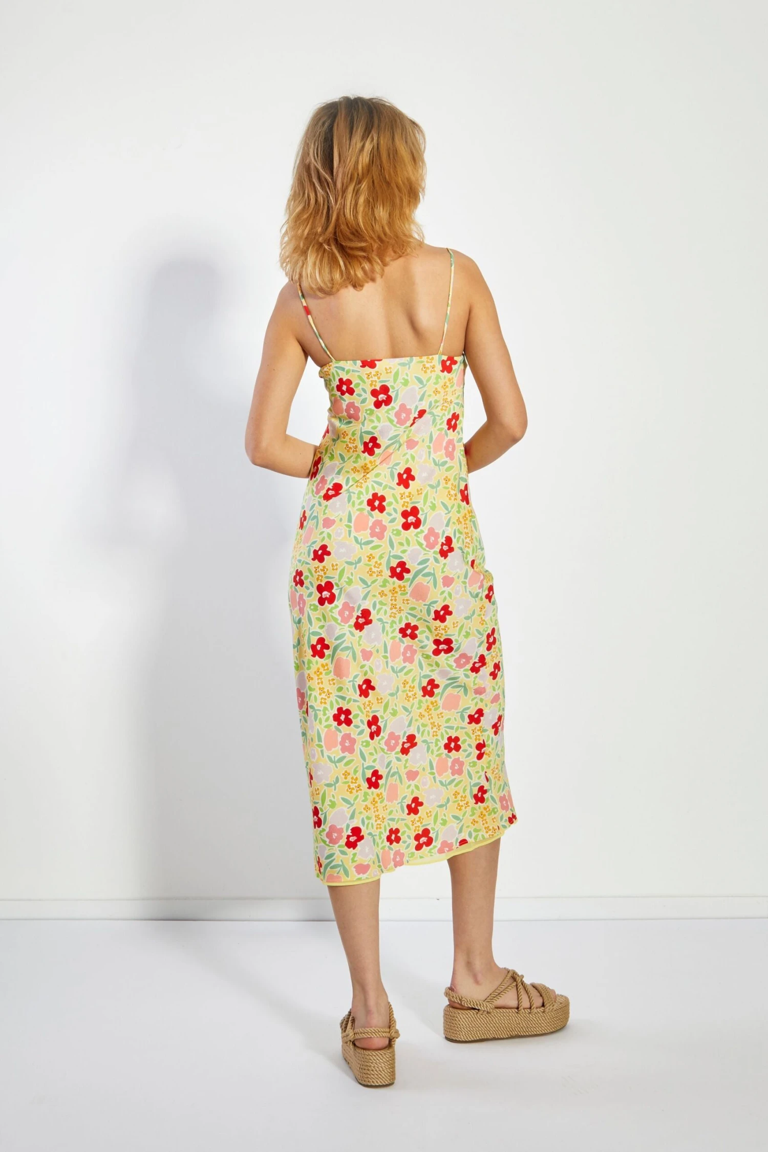 Glamorous Womens Lemon Bold Floral Strappy Midi Dress. Opt for ditsy print style with this flattering shift midi dress. This super flattering dress features a strappy finish and a midi finish. Style with strappy sandals for the daytimes and heels for the evening!