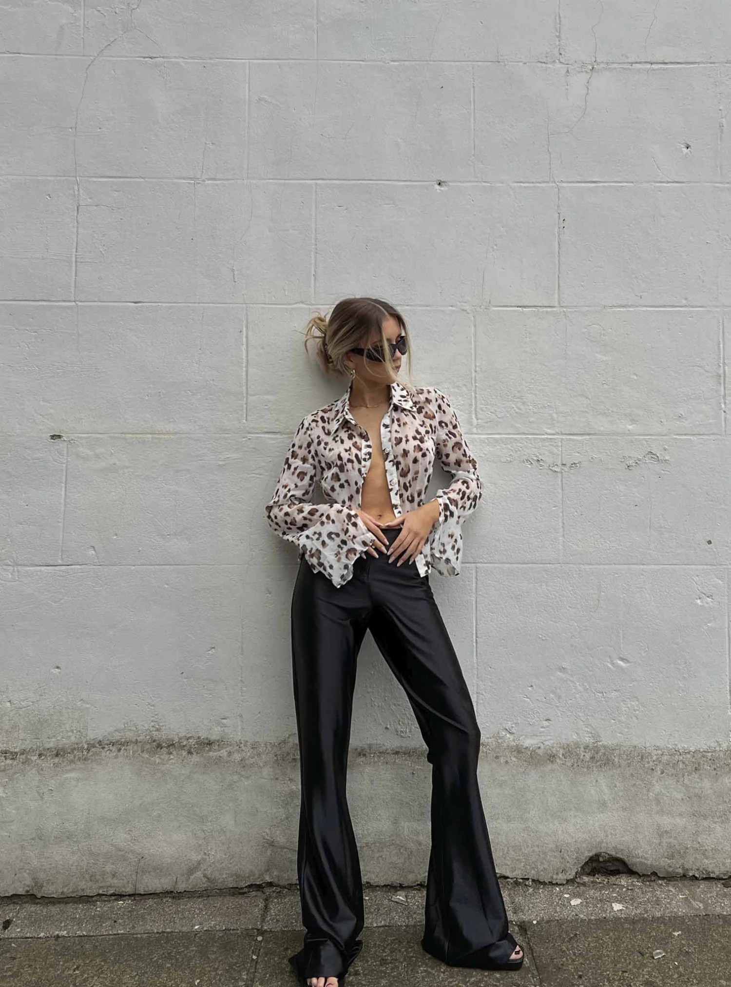 Glamorous Leopard Print Chiffon Button Front Shirt. This shirt is a must have this season. Featuring an on-trend leopard print with button up detail in a luxe sheer chiffon finish, this piece is perfect for you. Style with a pair of flared trousers for a polished trendy look this season.