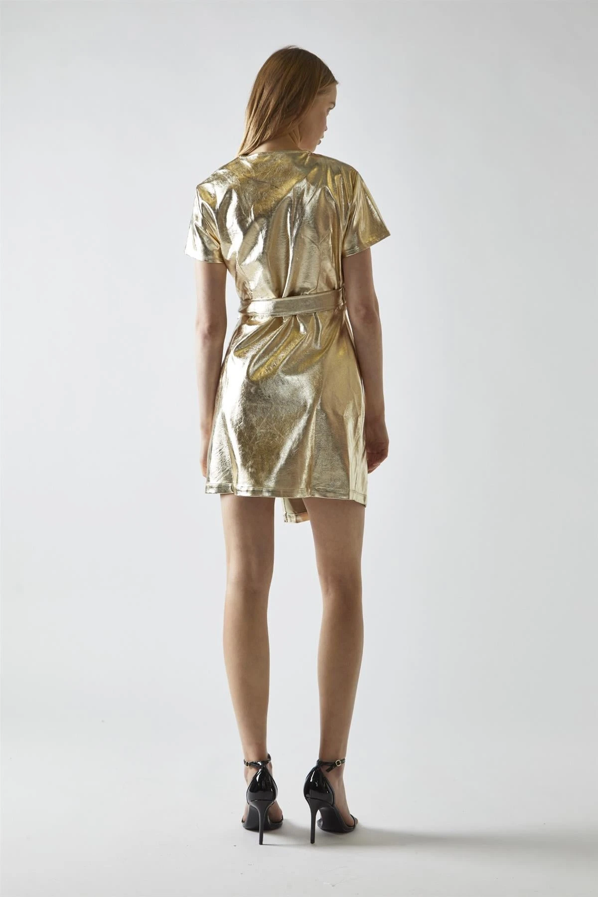 Glamorous Light-Gold PU Wrap Mini-Dress. Dazzle in this stunning light gold PU wrap mini-dress that’s perfect for those special nights out. The shimmering fabric catches the light beautifully, giving you a radiant glow as you move. Its wrap style is not only flattering but also allows for a customizable fit, hugging your curves in all the right places. The side tie adds a playful touch and lets you adjust the dress to your liking. The mini length shows off your legs, making it ideal for dancing the night away or making an entrance at your next party. This dress is a versatile piece that can be dressed up with heels and statement jewellery for a glamorous look, or paired with ankle boots for a more edgy vibe. The light gold colour is a refreshing alternative to traditional metallics, offering a softer, more ethereal shine. It’s comfortable enough to wear all evening but eye-catching enough to make you feel like the star of the show. This mini-dress isn’t just clothing; it’s liquid gold that you can wear, ready to make any night feel extra special.