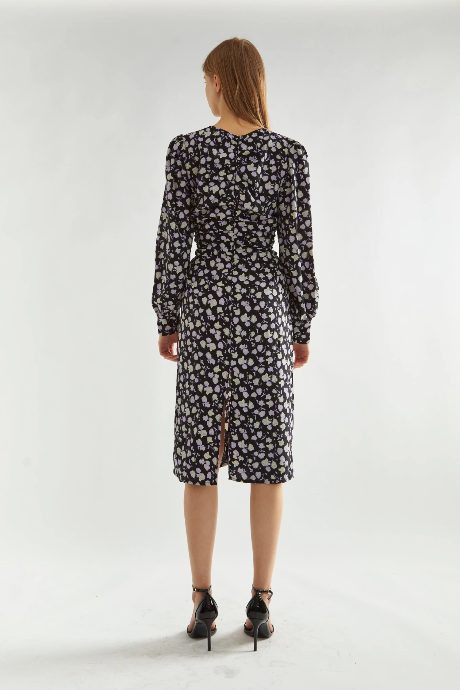 Glamorous Women’s Lilac-Rose Ruched-Front Midi-Dress. Get ready to turn heads with our Lilac-Rose Ruched-Front Midi-Dress. This dress is a must-have for any fashion-forward individual. The playful ruched front design adds a touch of quirkiness to this elegant midi-length dress, making it perfect for any occasion (or photo op). Plus, the long sleeves provide versatility and comfort. Be ready to turn heads and make a statement with this one-of-a-kind dress.