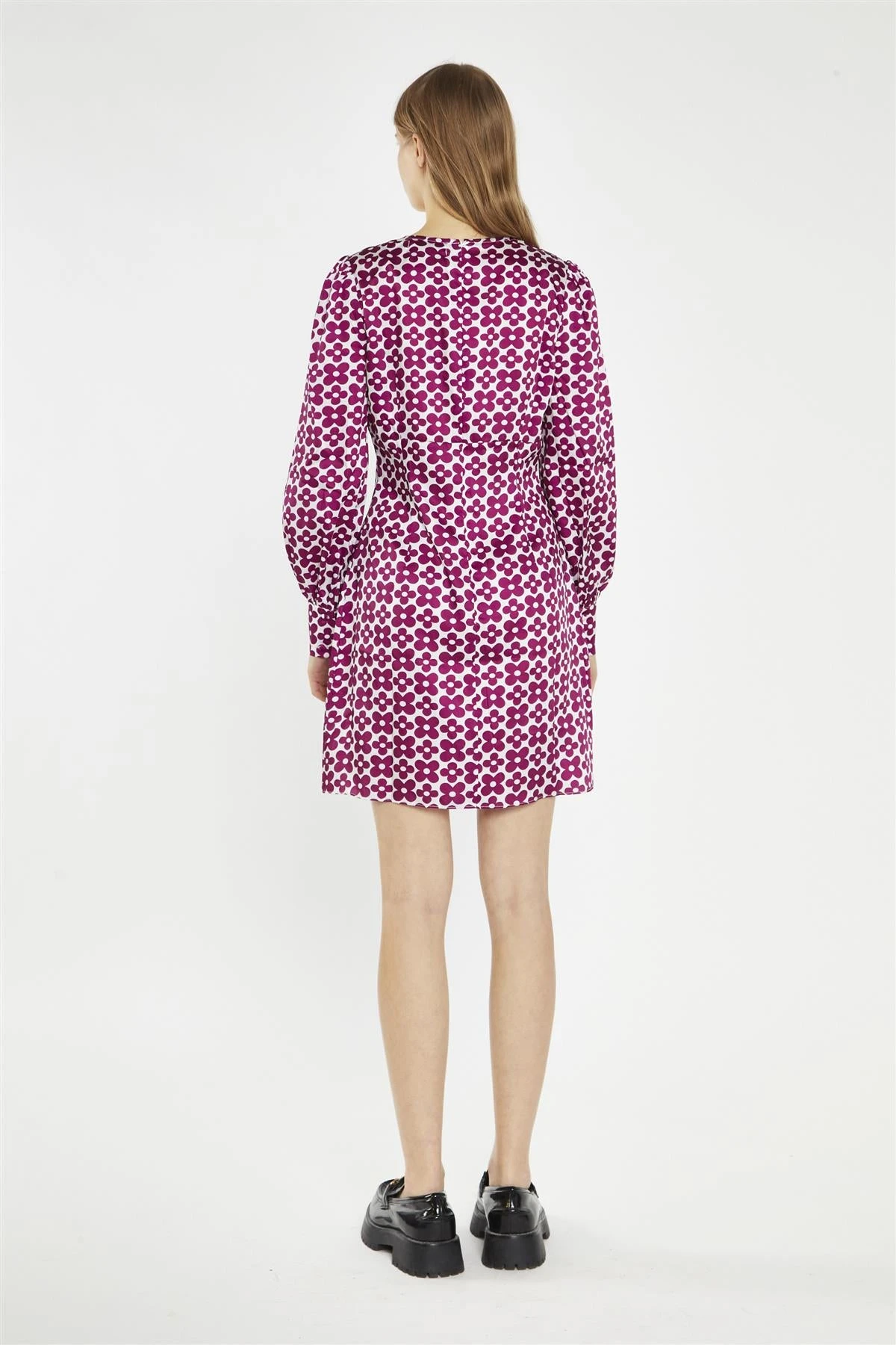 Glamorous Women’s Magenta-Flower V-Neck Mini-Dress. Add a pop of colour to your wardrobe with this vibrant magenta flower print mini dress. The V-neck creates a flattering silhouette, while the long sleeves provide a touch of coverage. The mini length is perfect for showing off your legs and favourite pair of heels. This dress is ideal for a night out with friends or a special occasion. Pair it with some strappy sandals and a bold lip for a glamorous look, or dress it down with sneakers and a denim jacket for a more casual vibe. The magenta hue is both bold and playful, making this dress a true showstopper. This dress is sure to turn heads and make you feel confident and fabulous..