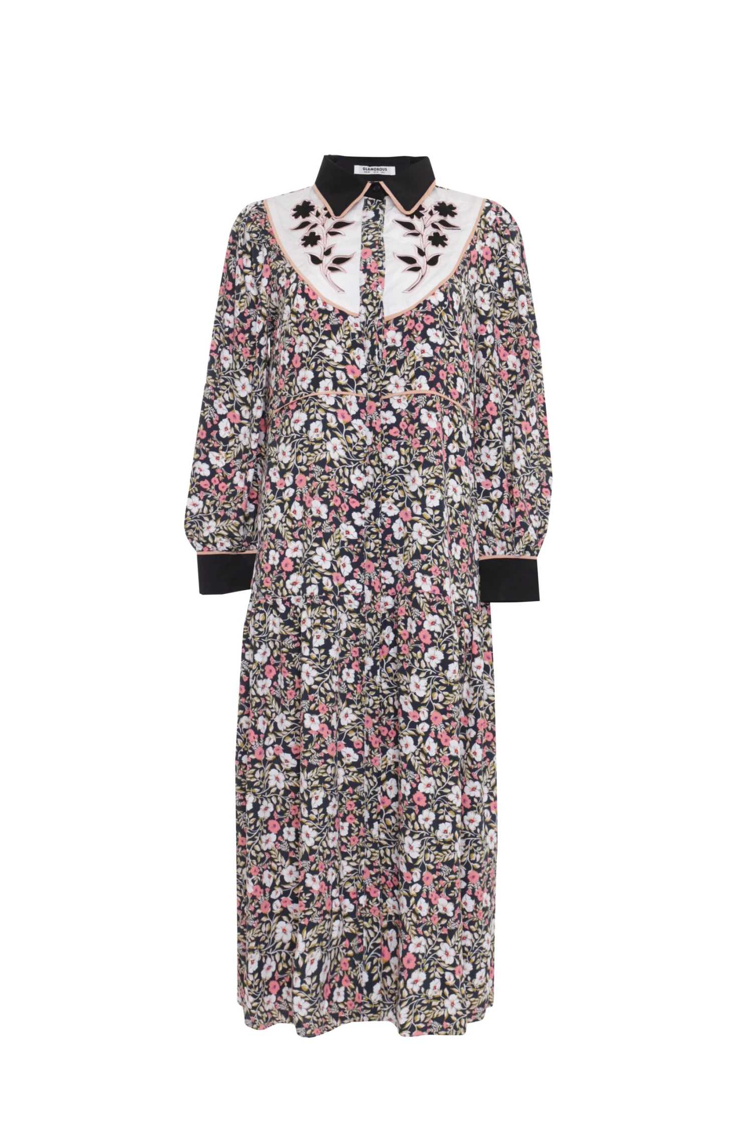 Glamorous Womens Navy Folk Floral Black Collar Midi Dress. Opt for this on trend unique print style with this flattering collar midi dress. This super flattering dress features a flattering style and 3/4 length sleeves. Style with high knee boots for the daytimes and heels for the evening!