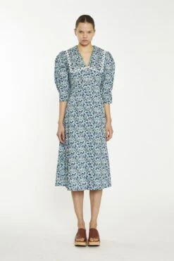 Glamorous Women’s Navy Vintage Floral Collared Midaxi-Dress. This navy midaxi dress brings vintage charm to your wardrobe with its timeless floral print and delicate lace trim detailing. The collared neckline and button-front design add a classic touch, while the 3/4 sleeves make it a comfortable choice for cooler days or transitioning between seasons. The flowy silhouette offers ease of movement, making it as practical as it is stylish. Dress it up with heels and simple jewellery for a special occasion, or pair it with ankle boots and a crossbody bag for a more casual, everyday look. Its versatile length makes it perfect for everything from brunch with friends to an evening stroll. This dress is an effortless blend of comfort and elegance.