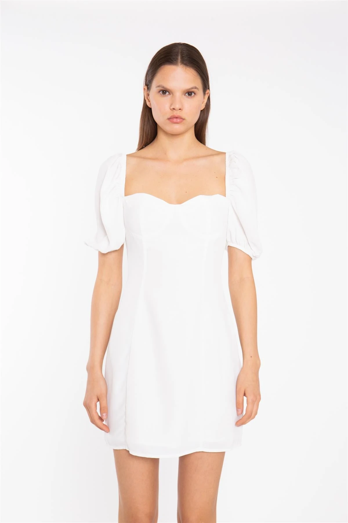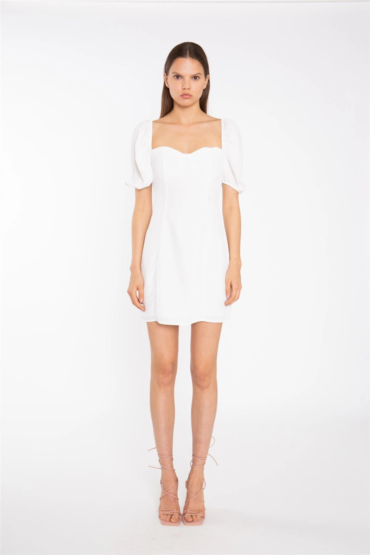Glamorous Women’s Off-White Bust Cup Mini-Dress. The perfect mini-dress for day to night, this Off-White Bust Cup Mini-Dress features a tailored fit and stylish puff sleeves. The bust cup detail adds a touch of elegance to the modern design. Look and feel fabulous in this must-have dress. Dress this up or down with a quick change of shoes, it will not let you down!