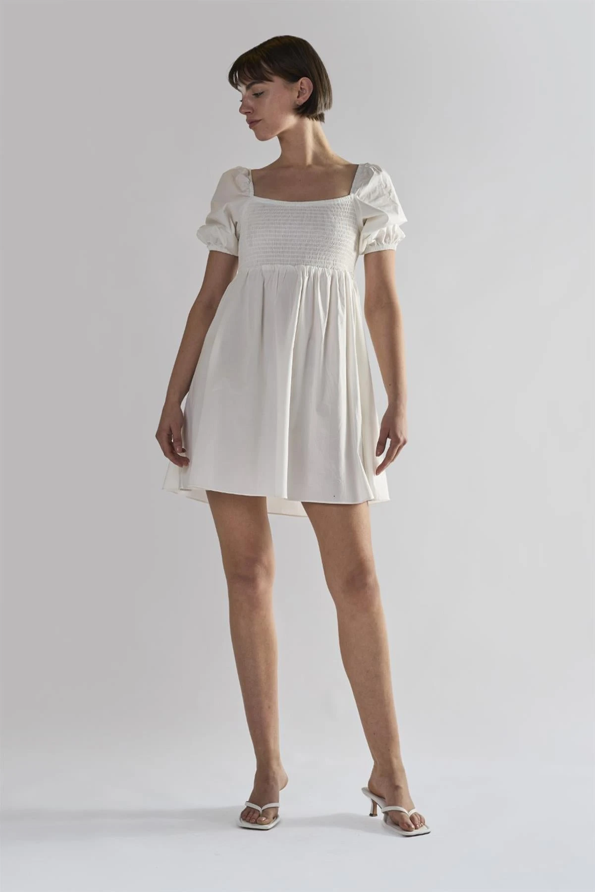 Glamorous Women’s Off-White Square-Neck Mini-Dresses. This off-white square-neck mini dress is all about keeping things light and breezy while adding a little charm to your day. The square neckline brings a touch of classic style, framing your collarbone in a way that feels both fresh and timeless. Short sleeves make it easy to wear from morning errands to afternoon meet-ups, letting you stay cool and comfortable as you go about your plans. The mini length adds a playful note, perfect for showing off your favourite sandals or sneakers. Its simple design makes mixing and matching a breeze-toss on a denim jacket or a cozy cardigan when the weather cools down. This dress is made for those moments when you want to look put-together without any extra fuss, letting you enjoy your day with ease and confidence.