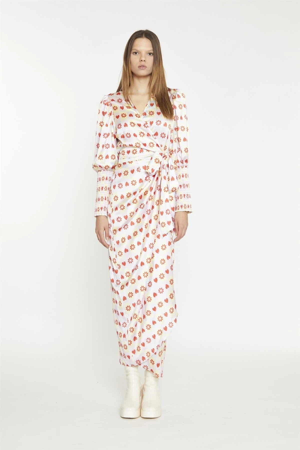 Glamorous Women’s Pastel Tile-Print Wrap Maxi-Dress. Embrace the carefree spirit of summer with our Pastel Tile-Print Wrap Maxi-Dress. This effortless piece features a wrap design that flatters your figure, while the shirred cuffs and long sleeves add a touch of playful elegance. The maxi length keeps you cool and comfortable, perfect for those warm, sunny days. The pastel tile print adds a whimsical touch, making this dress a versatile choice for any occasion – from a casual brunch to a sunset stroll. Slip it on and let the fabric flow around you, capturing the essence of laid-back, carefree style.