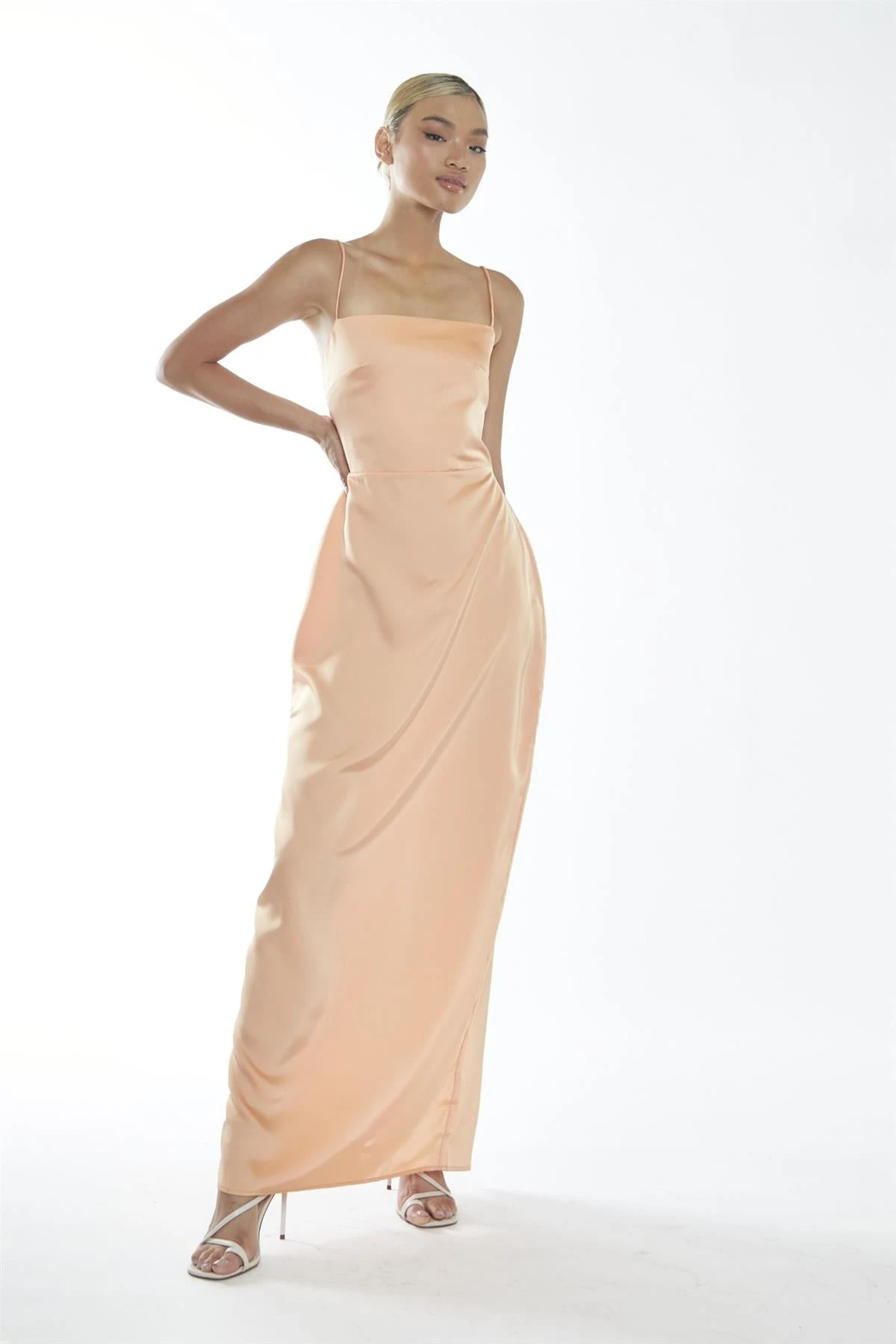 Glamorous Studio Women’s Peach Spaghetti Strap Maxi-Dress. This dreamy maxi dress is all about effortless elegance and comfort. With its spaghetti straps and sleeveless design, it’s lightweight and perfect for warmer days or layering with a cozy cardigan on cooler evenings. The leg split adds a playful touch, giving you freedom to move while adding a bit of flair to the flowing silhouette. The concealed zip fastening at the back keeps the look sleek and polished, making it easy to wear without taking away from the dress’s clean lines. Pair it with sandals for a relaxed daytime vibe or dress it up with heels and delicate jewellery for a special occasion. The soft fabric drapes beautifully, making this dress as comfortable as it is stunning. It’s one of those pieces that feels just right for everything from casual strolls to elegant dinners.