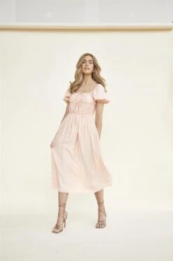 Glamorous Women’s Peach Square-Neck Midi-Dress. Brighten up your wardrobe with this charming square-neck midi dress that’s sure to become a favourite for sunny days and special occasions. The flattering square neckline frames your décolletage beautifully, while the midi length offers a graceful silhouette that’s both elegant and comfortable. Tie detailing adds a playful touch, allowing you to customize your fit and create a unique look each time you wear it. Short statement sleeves bring a dash of drama to the dress, making it stand out from your average sundress. This dress isn’t just clothing; it’s a mood-lifter that brings a touch of joy to your day. Its soft hue complements a variety of skin tones, ensuring you look radiant in any lighting. Pair it with strappy sandals and a woven bag for a casual brunch, or dress it up with heels and statement earrings for an evening event. The versatile design makes it suitable for everything from garden parties to date nights. Let this dress be your go-to choice for those moments when you want to feel effortlessly feminine and ready to take on the world with a smile.