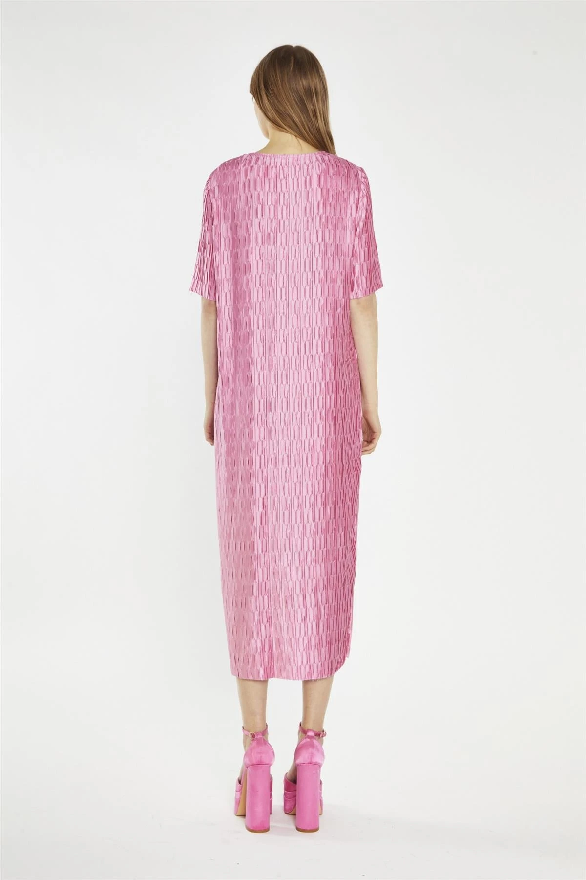 Glamorous Women’s Pink Geo-Plisse Midi-Dress. The Pink Geo-Plisse Midi-Dress is a relaxed and comfortable choice for any occasion. The loose fit and midi length create a flattering silhouette, while the geo plisse fabric adds a touch of playful texture. Short sleeves and a crew neck provide a classic, easy-to-wear style. This dress is perfect for throwing on and feeling instantly put-together, whether you’re running errands or meeting friends for brunch. The soft pink hue is versatile and pairs well with a variety of accessories. Slip into this dress for a effortless, carefree look that’s sure to lift your mood. It’s the perfect blend of style and comfort.