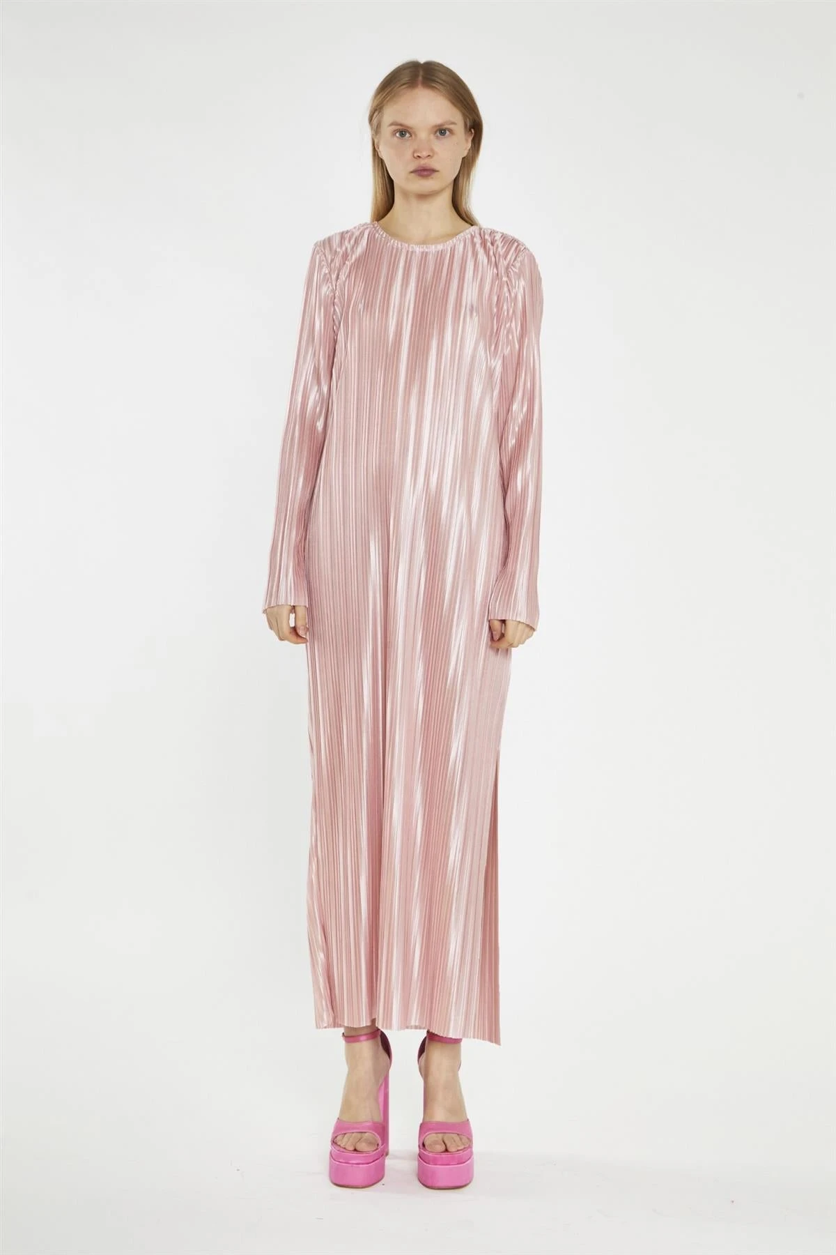 Glamorous Women’s Pink-Plisse Maxi-Dress. Introducing the Pink-Plisse Maxi-Dress – your new go-to for effortless style! This dress is all about comfort and ease, with a loose fit that flatters your figure. The side split adds a touch of drama, while the long sleeves keep you cozy. The plisse fabric gives it a unique, textured look that’s simply stunning. And the maxi length? It’s perfect for those days when you want to feel like a total boss. Whether you’re running errands or heading out for a night on the town, this dress has got you covered. Slip it on and let the compliments roll in!