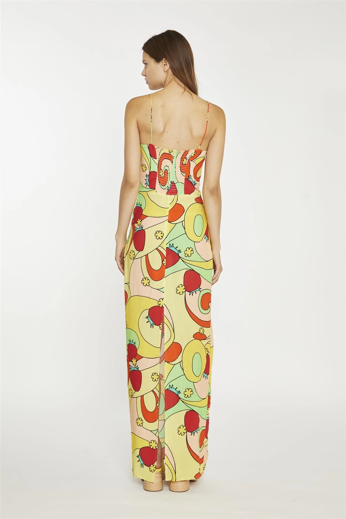 Glamorous Women’s Psychedelic-Strawberry Slim-Spaghetti-Strap Maxi-dress. Turn heads with this bold and playful psychedelic strawberry maxi dress. The slim spaghetti straps add a delicate touch, while the bodycon fit flatters your figure by hugging your curves in all the right places. A dramatic leg split brings just the right amount of flair, making it easy to move while adding a bit of edge to the design. The concealed zip fastening at the back ensures a smooth, polished look, keeping the focus on the vibrant print and sleek silhouette. Pair it with chunky heels and a clutch for an evening event, or dress it down with sandals and a light cardigan for a fun daytime outfit. This dress is all about making a statement while keeping things effortless and comfortable. With its unique print and thoughtful details, it’s perfect for adding some personality to your wardrobe and standing out wherever you go.