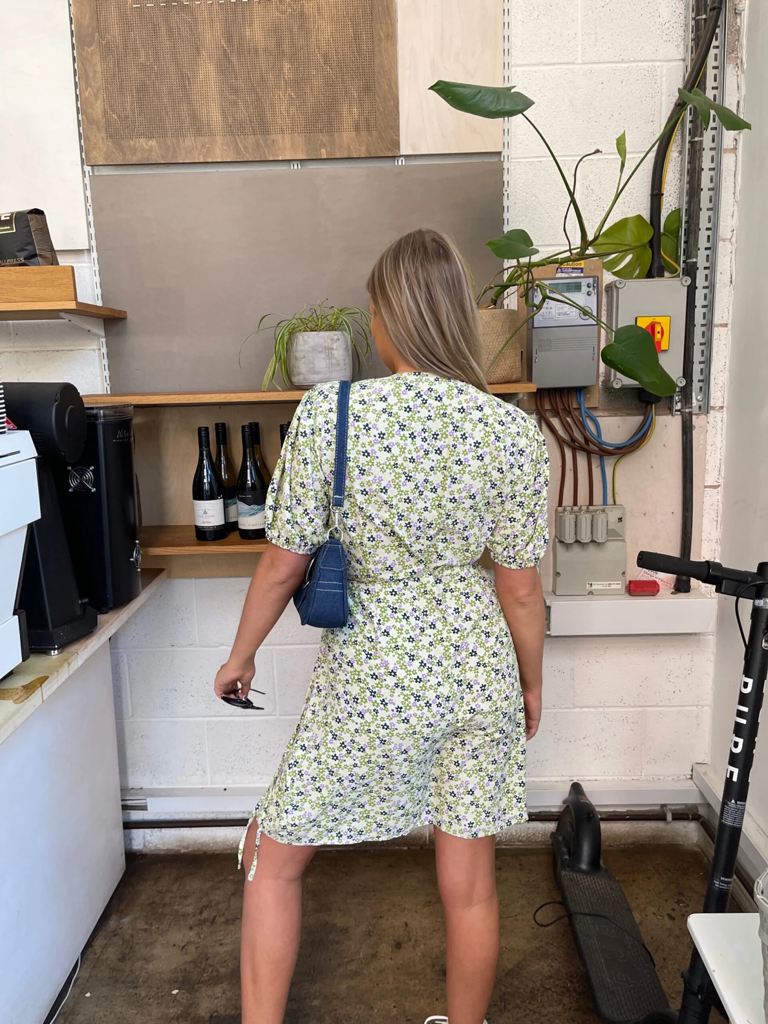 Make a statement with our Glamorous Womens Retro Daisy Wrap Short-Sleeve Mini-Dress! This dress is the perfect choice for anyone who wants to add some fun and boldness to their wardrobe.