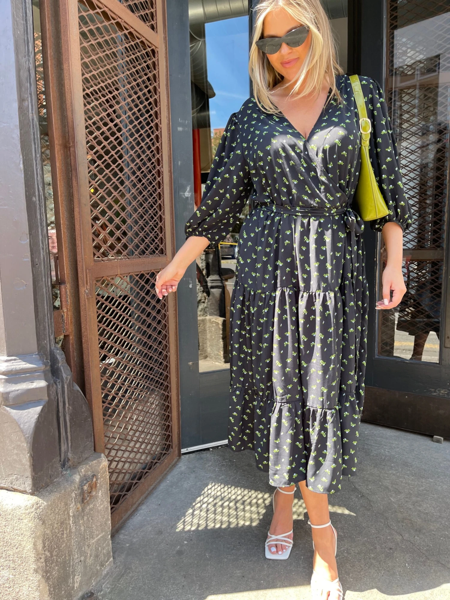 Glamorous Curve Women’s Rosebud Floral Tiered Wrap Front Midaxi-dress. This Midaxi dress is the perfect versatile piece that you will be wearing all year round! Featuring a flattering wrap front design and tiered skirt, this dress is will hug you in all the right places. Pair this with your favourite heeled boots for a stunning day to night look!