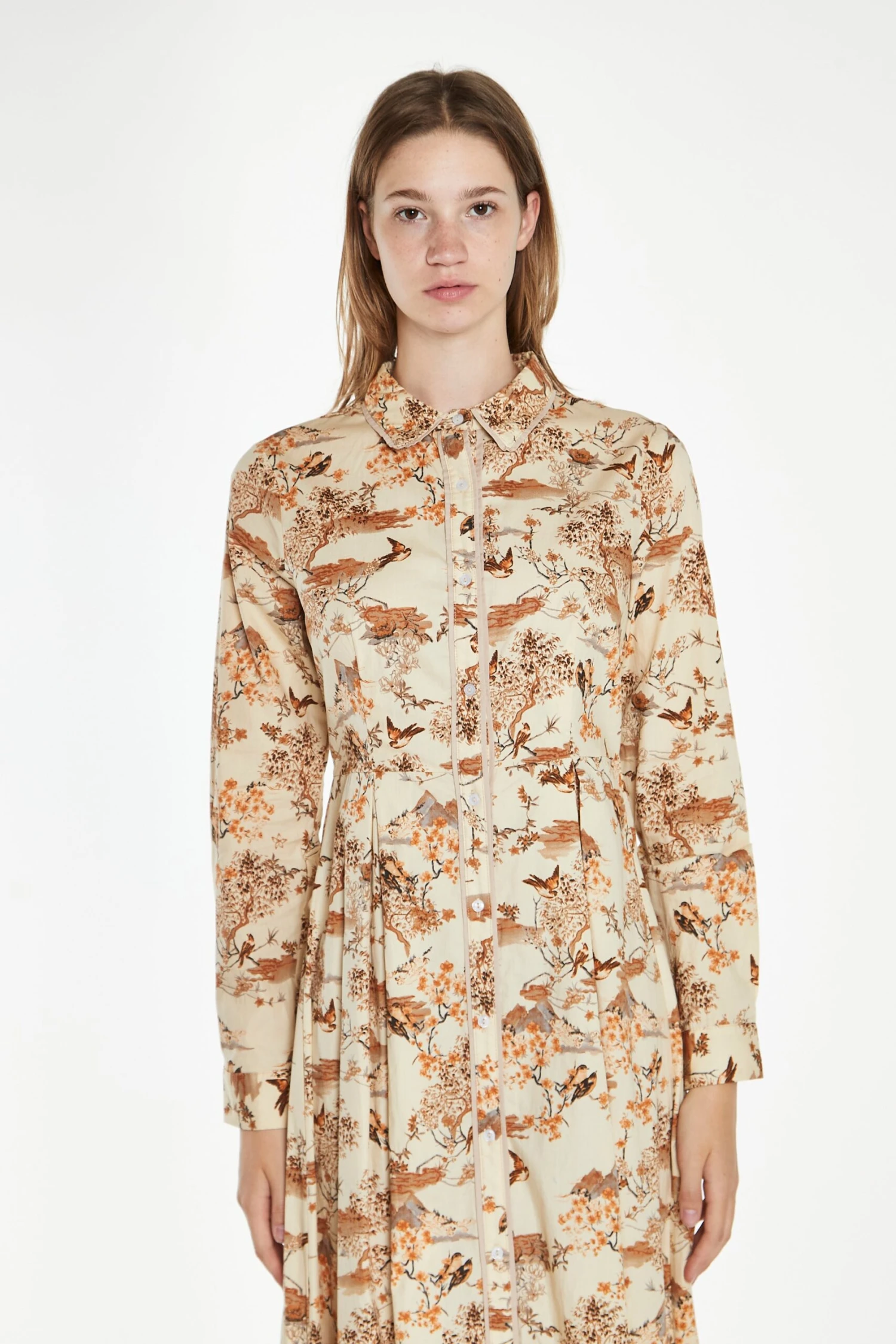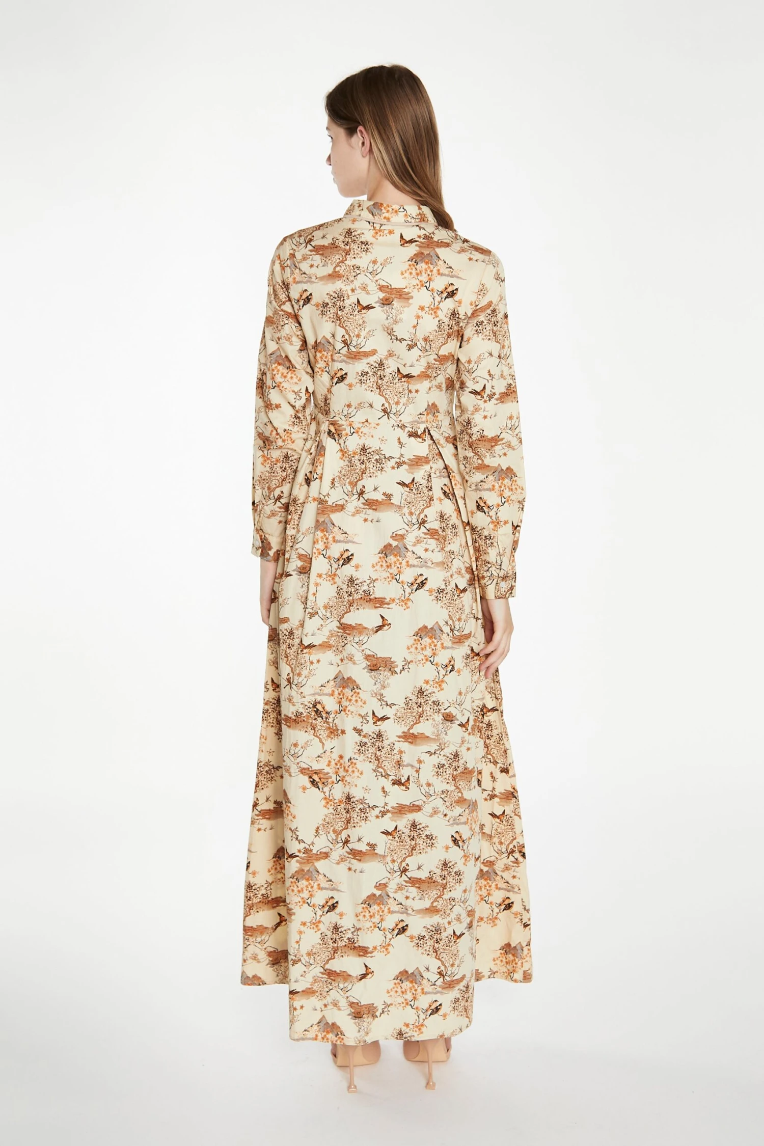Glamorous Modesty Womens Tan Multi Blossom Long-Sleeve Maxi Shirt-Dress. This gorgeous maxi dress is an absolute show stopper! Featuring a unique blossom print with long sleeves and button front detail in a maxi length, this piece is a super flattering addition to your wardrobe. Pair with some heeled ankle boots for the ultimate look.