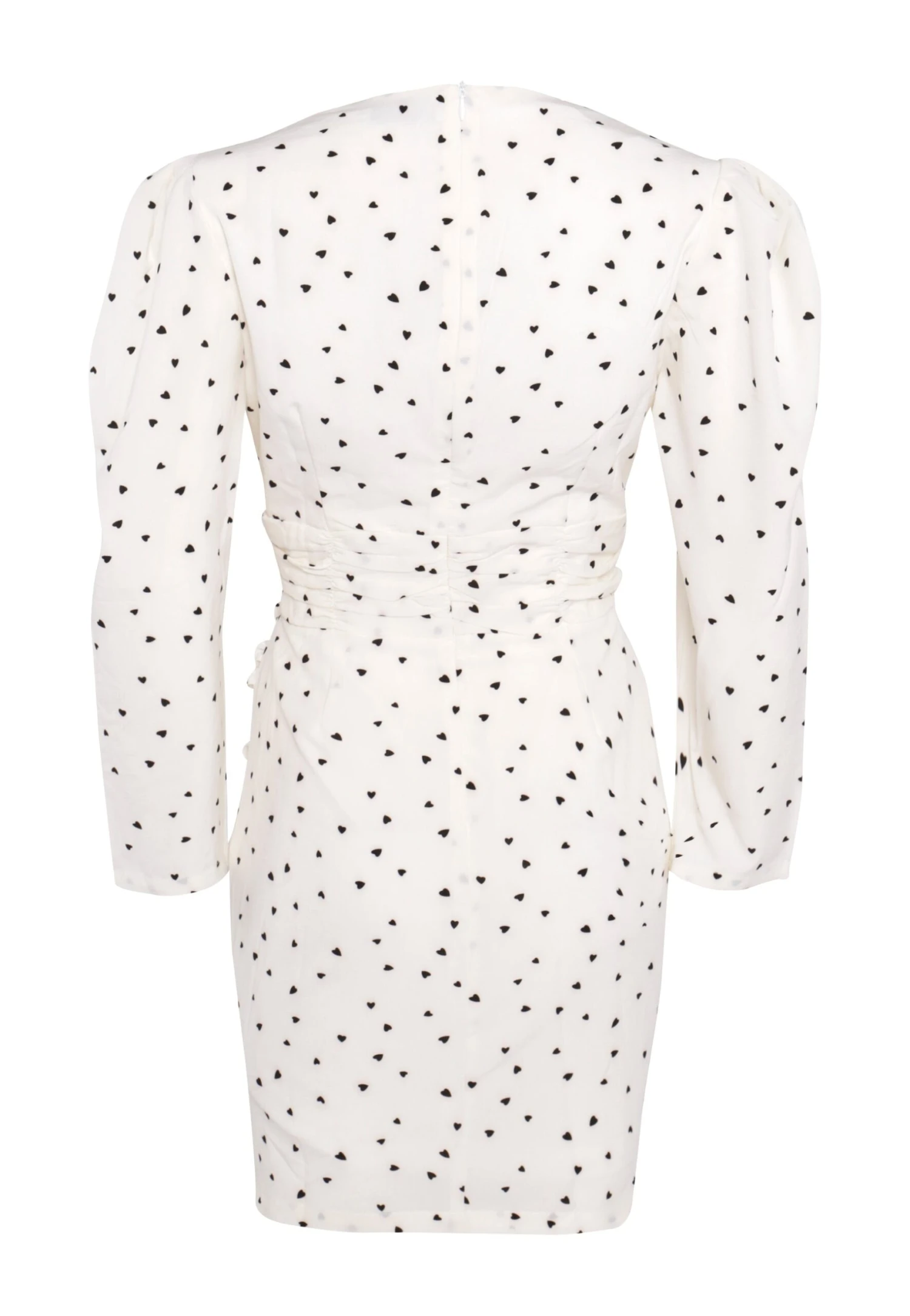 Glamorous White Heart Print V Neck Mini Dress with Puff Sleeves and Ruched Seams. This cute mini dress is perfect for drinks with the girls or a date night. Featuring a v neckline, long puff sleeves and ruching detailing at the seams, we love this piece here at Glamorous. Looks fab paired with some cute strappy heels and a clutch for the ultimate stylish look!