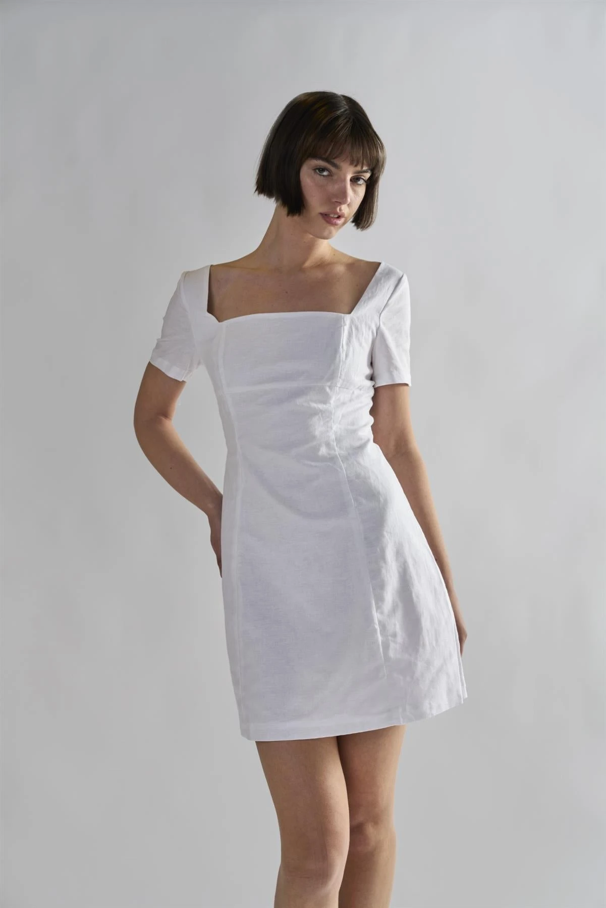 Glamorous Women’s White Square-Neck-Mini-Dresses. This white square-neck mini dress brings a fresh, breezy feel to your day, combining a classic silhouette with a playful twist. The square neckline frames your collarbone beautifully, offering a touch of vintage charm, while short sleeves keep things light and comfortable for any outing. Its mini length adds a fun, youthful vibe, making it easy to move around and enjoy whatever the day brings. The dress feels right at home paired with strappy sandals for a picnic, or you can throw on some sneakers for a casual walk around town. With its simple lines and easy fit, this dress is all about making you feel good without any fuss, letting your style shine in the most relaxed way.