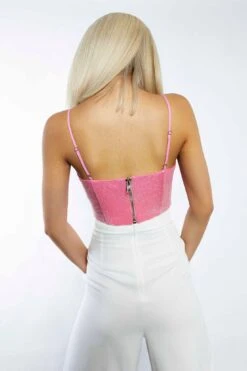 Glamorous Studio Barbie Pink Sequin Square Neck Corset Top