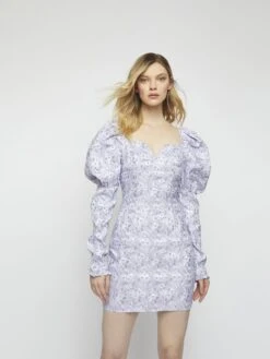 Glamorous Lilac Floral Volume Sleeve Mini Dress